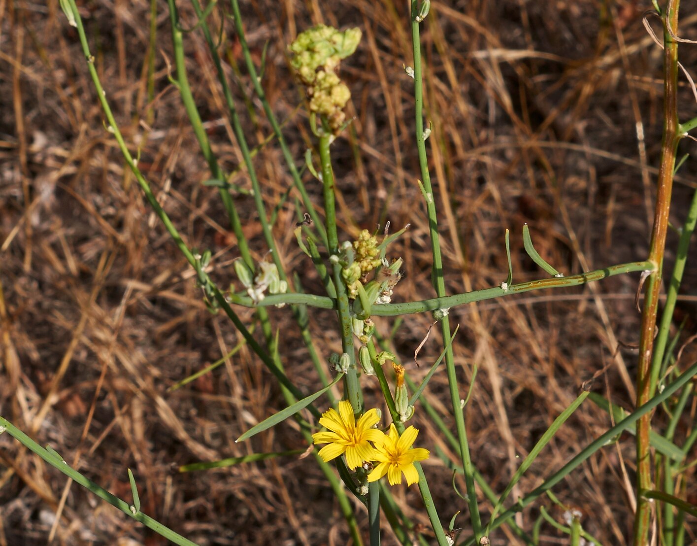 In Australia, there are three "biotypes" of skeleton weed — they're all the same species, but one has narrow leaves, another intermediate, and the third broad leaves.