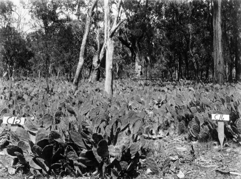 Following the release of the cactus-eating Cactoblastis moth larvae in 1926, "within 10 years, the once dense-fields of common prickly pear lay rotting or had vanished completely", according to the CSIRO.