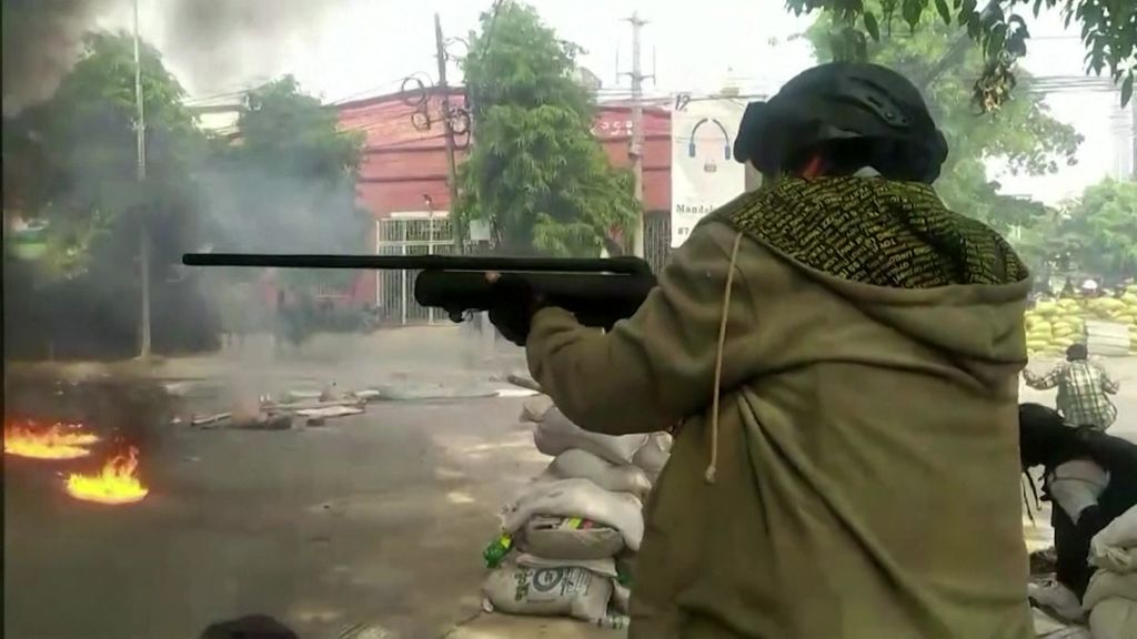 On Saturday, some protesters in Yangon were seen carrying bows and arrows.