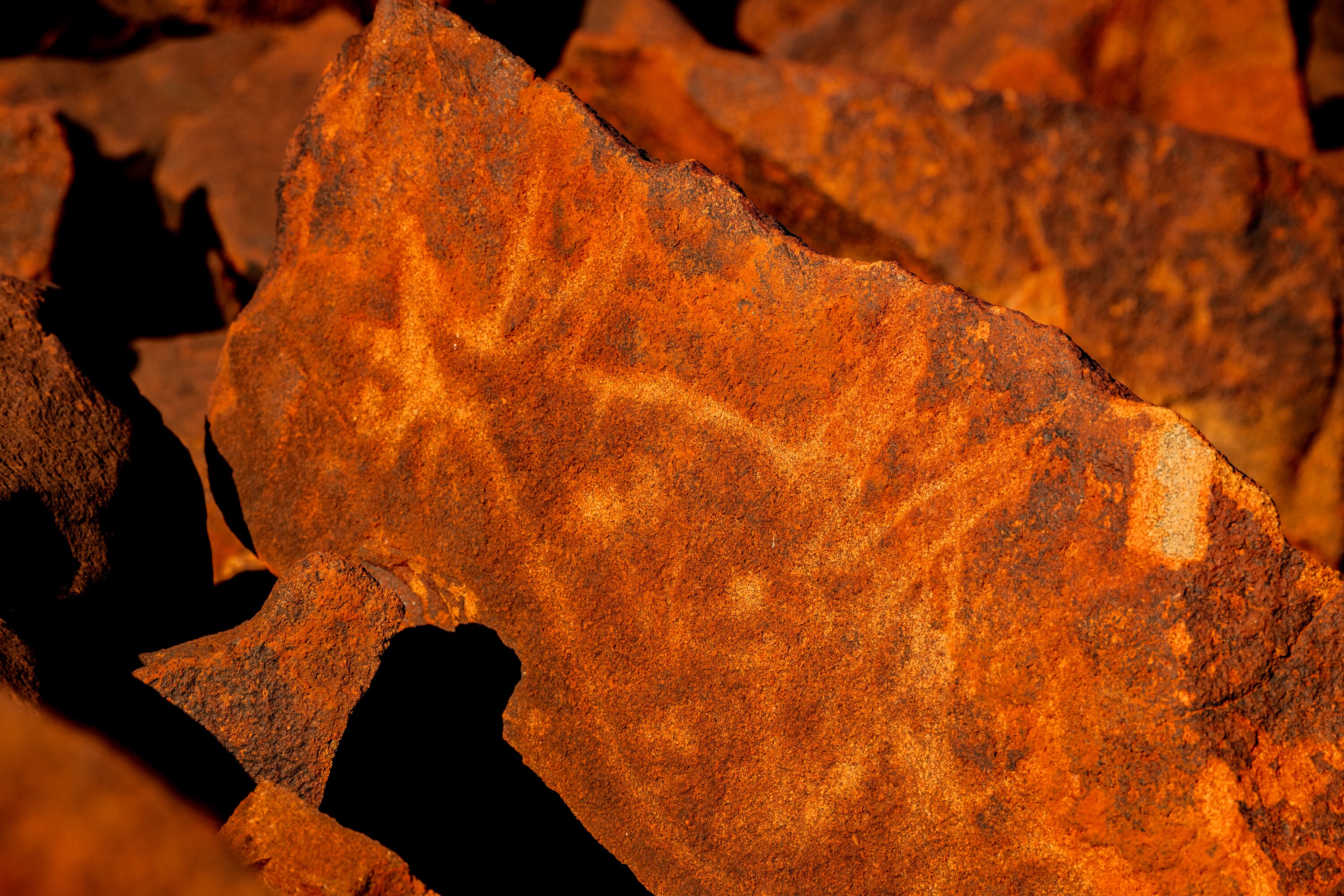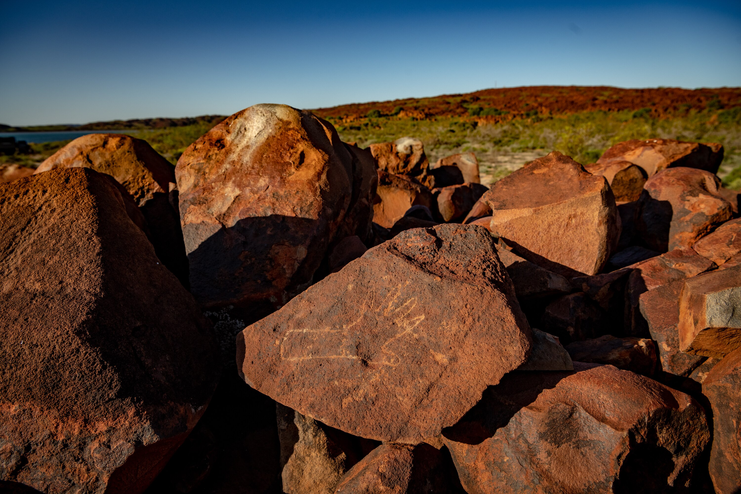 It means ‘hip bone sticking out’ and refers to the shape of the Burrup Peninsula in the Pilbara region, in northern Western Australia.
