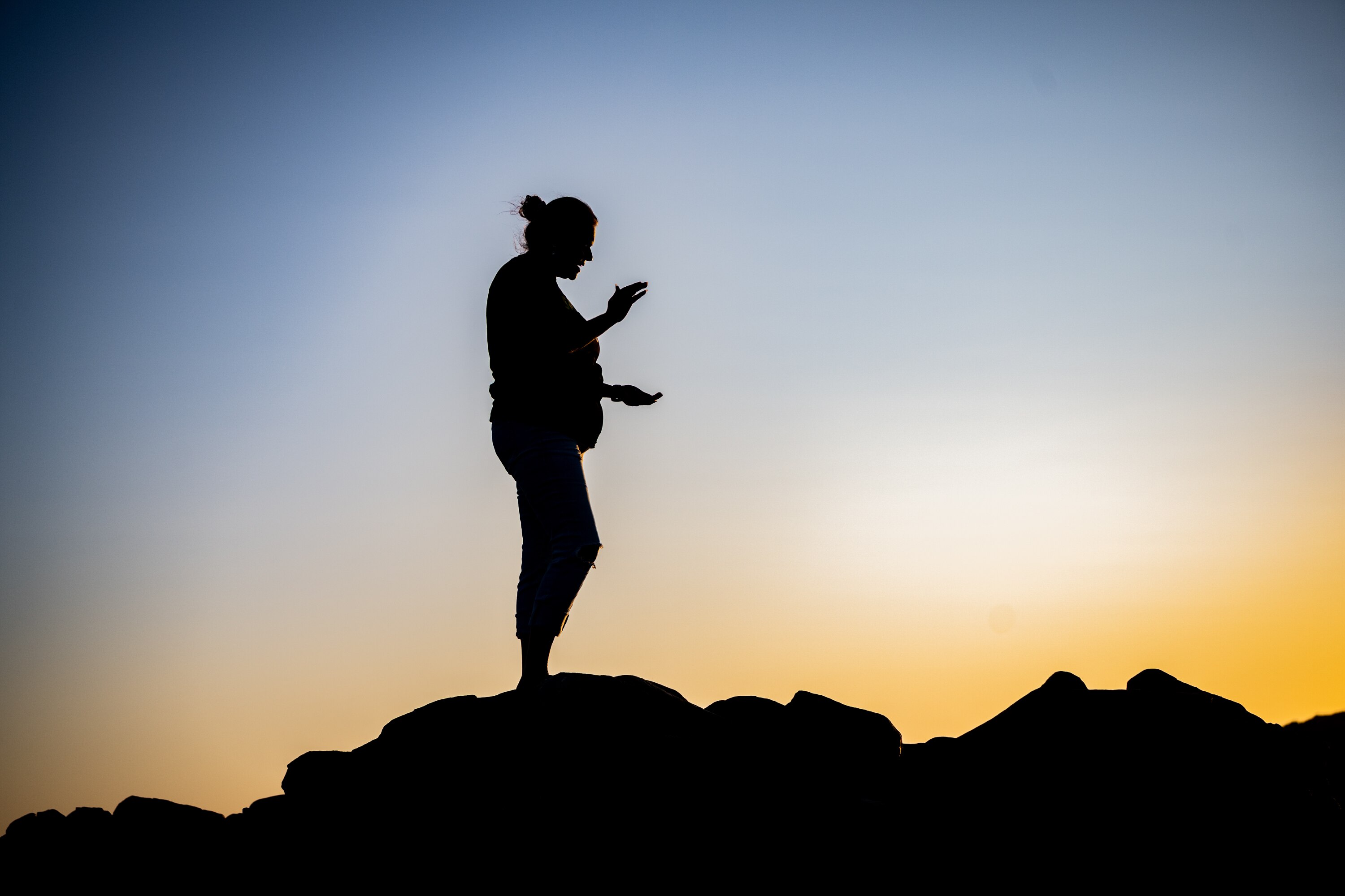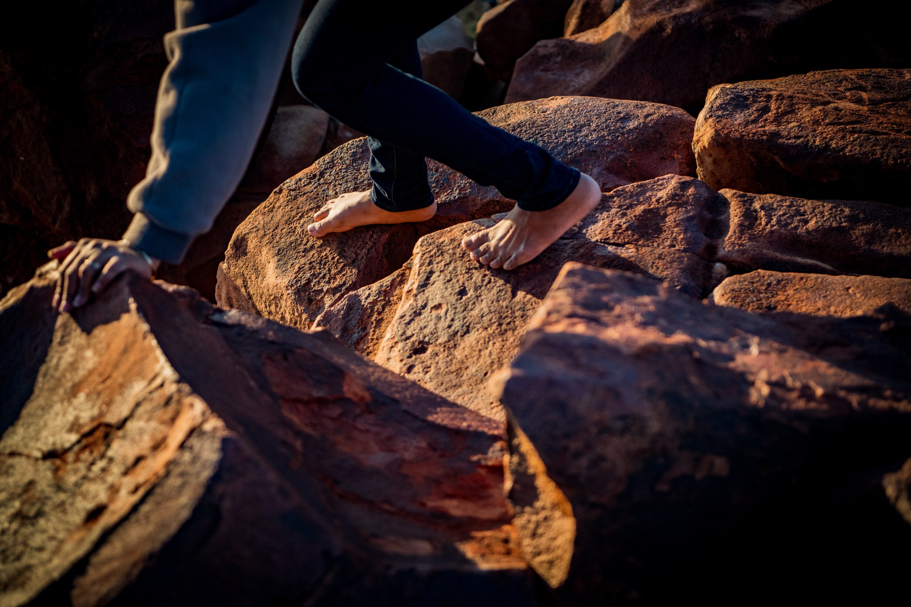 On the west coast of Australia, Raelene Cooper slips off her shoes before ascending a unique rock formation with her daughters.