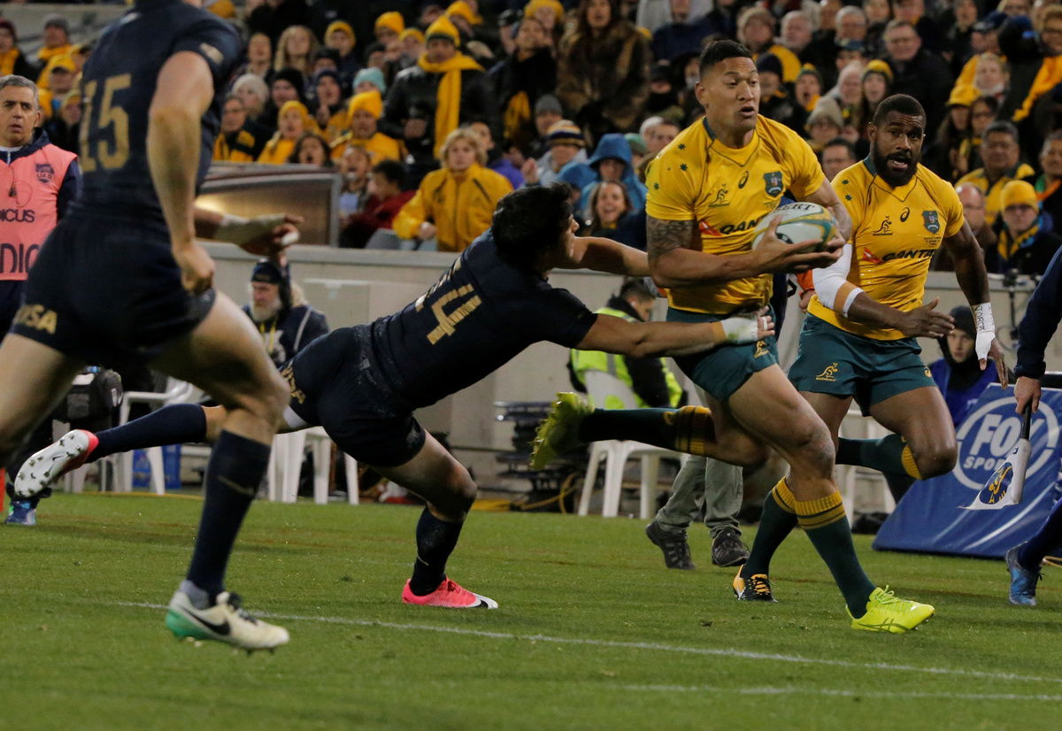 CANBERRA (Reuters) - Australia scored five second-half tries to rally to their first victory of this year's Rugby Championship with a 45-20 win over Argentina at a chilly Canberra Stadium on Saturday.