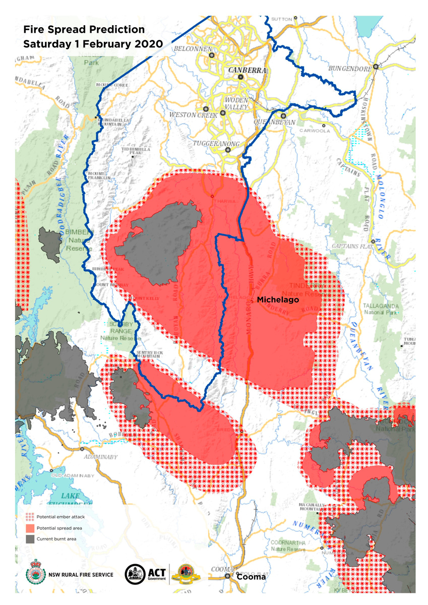 There were fears earlier in the day that the blaze could reach Canberra's southern suburbs, threatening homes and lives as they did in 2003 when fires destroyed almost 500 houses and claimed four lives.