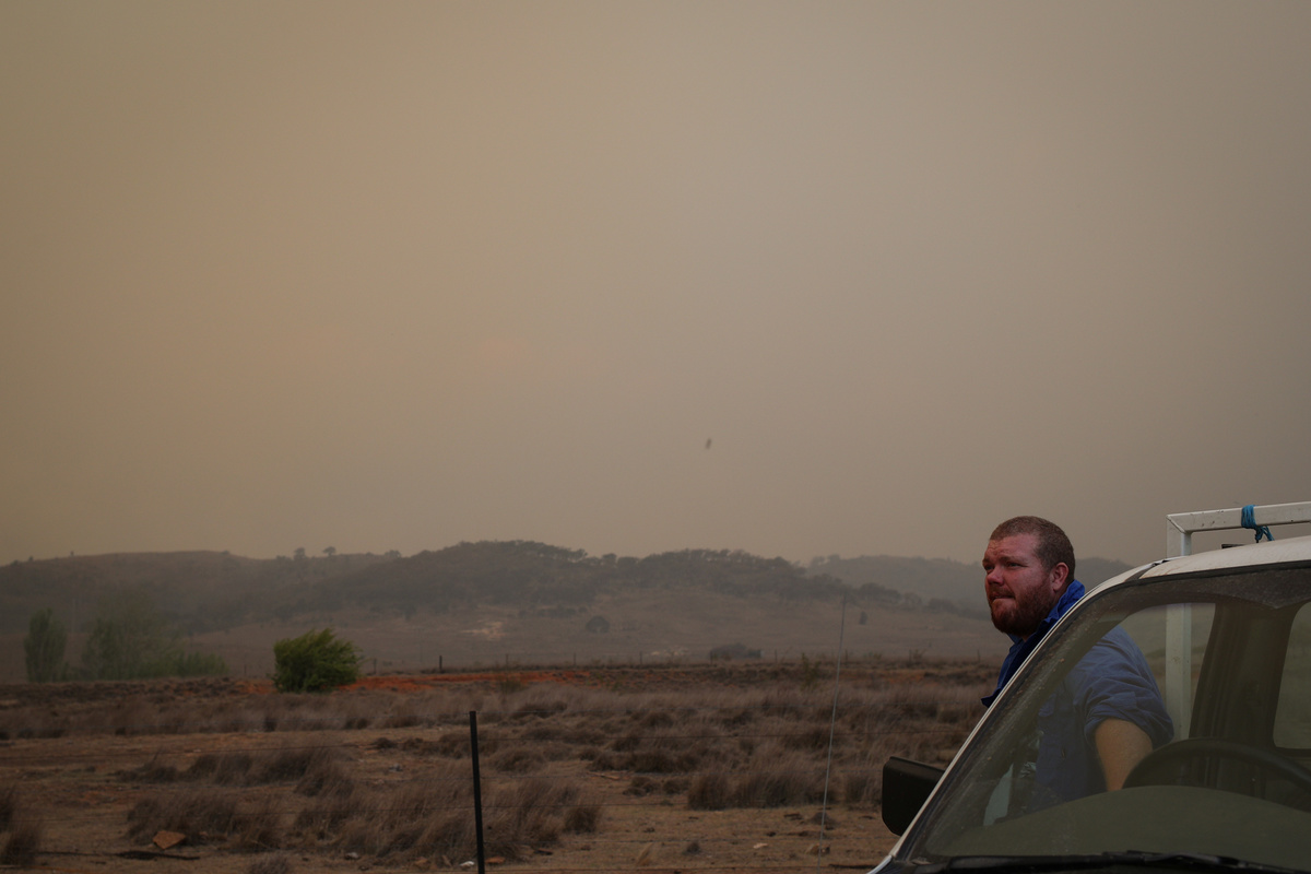 Skies along the Monaro Highway in the ACT turned orange-red on Saturday as an uncontrolled blaze ballooned to more than 50,000 hectares (123,500 acres) in size.