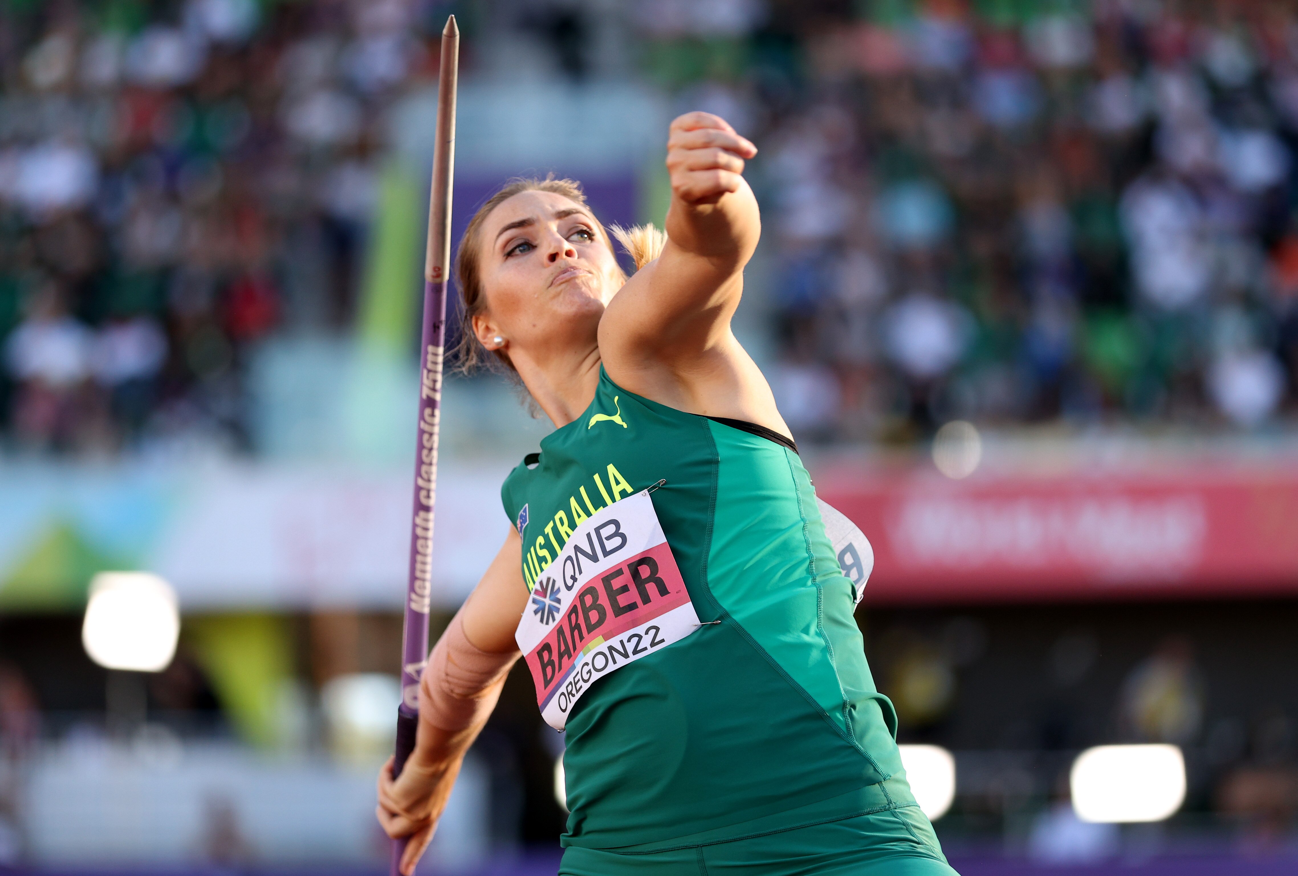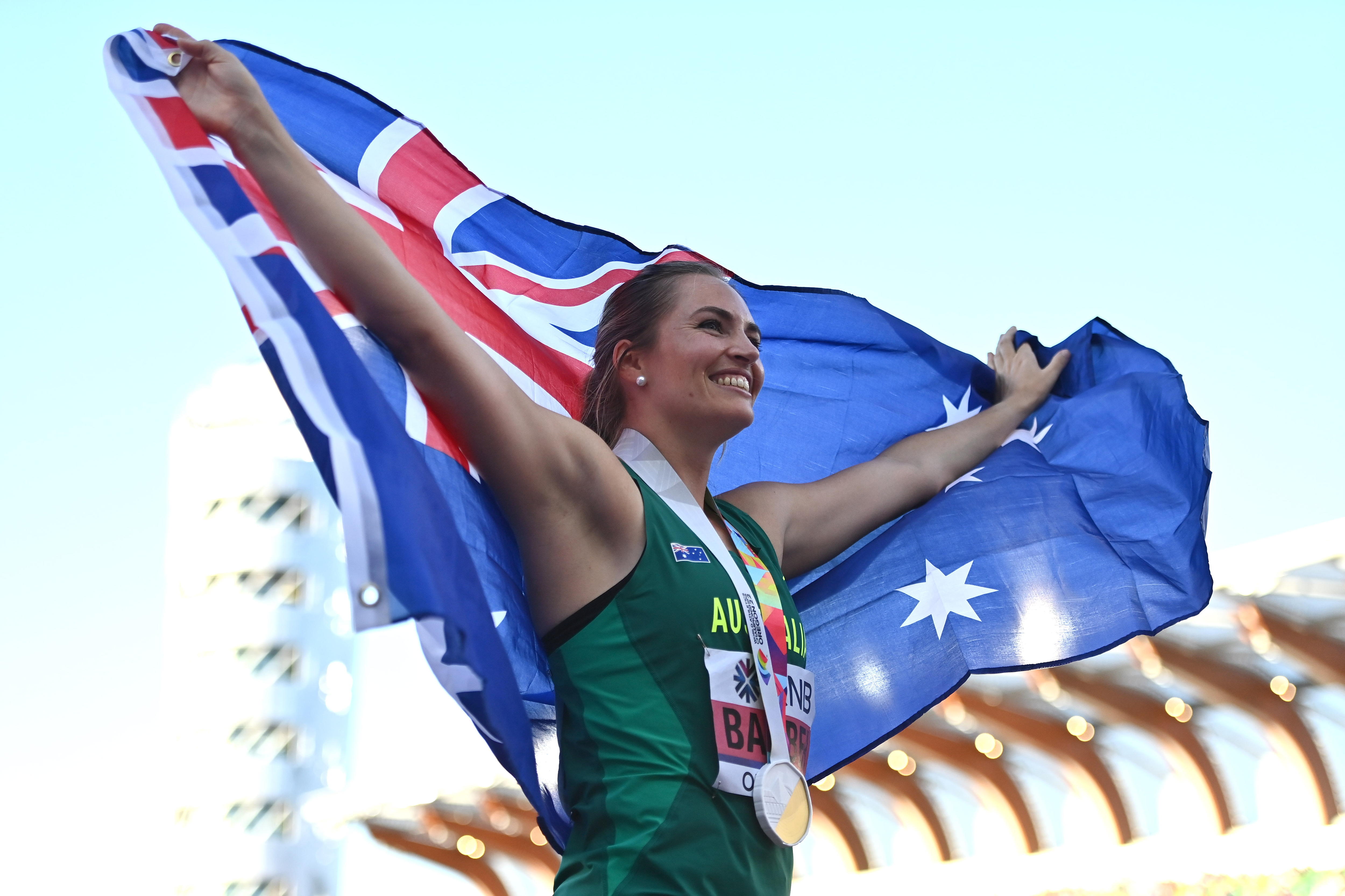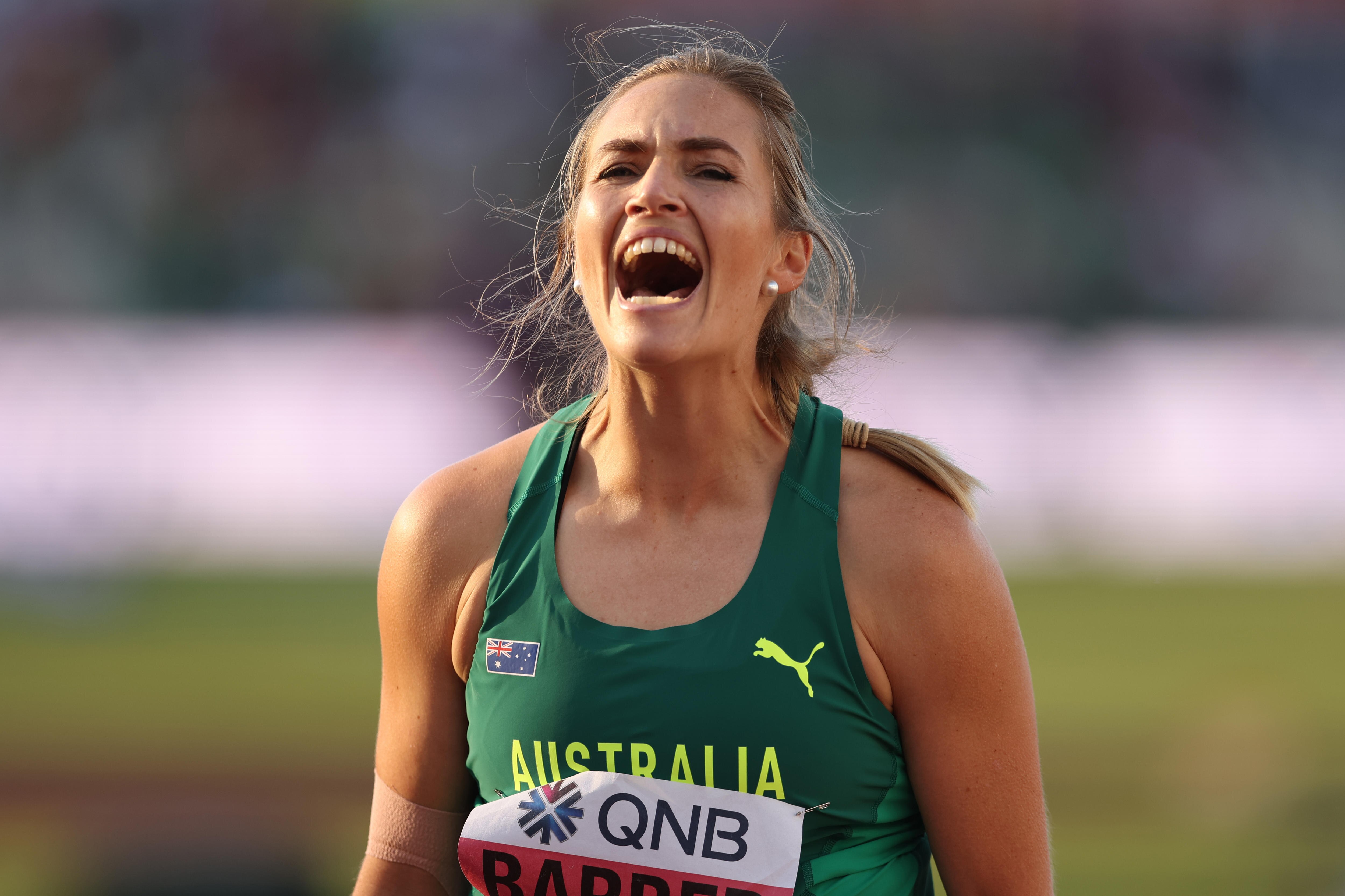 Barber further embellished her reputation as a supreme big-event competitor at Hayward Field with a huge third-round throw of 66.91 metres.