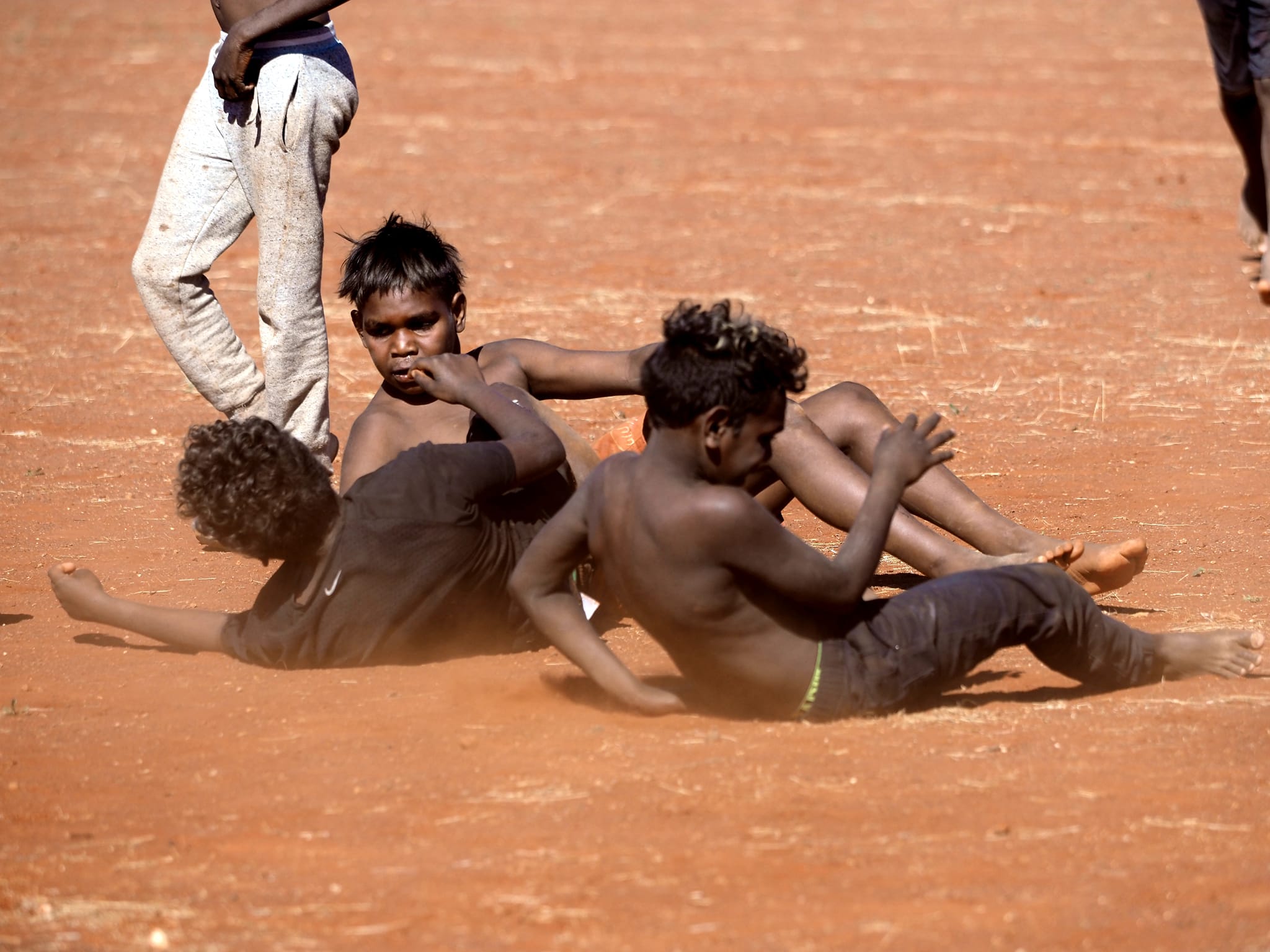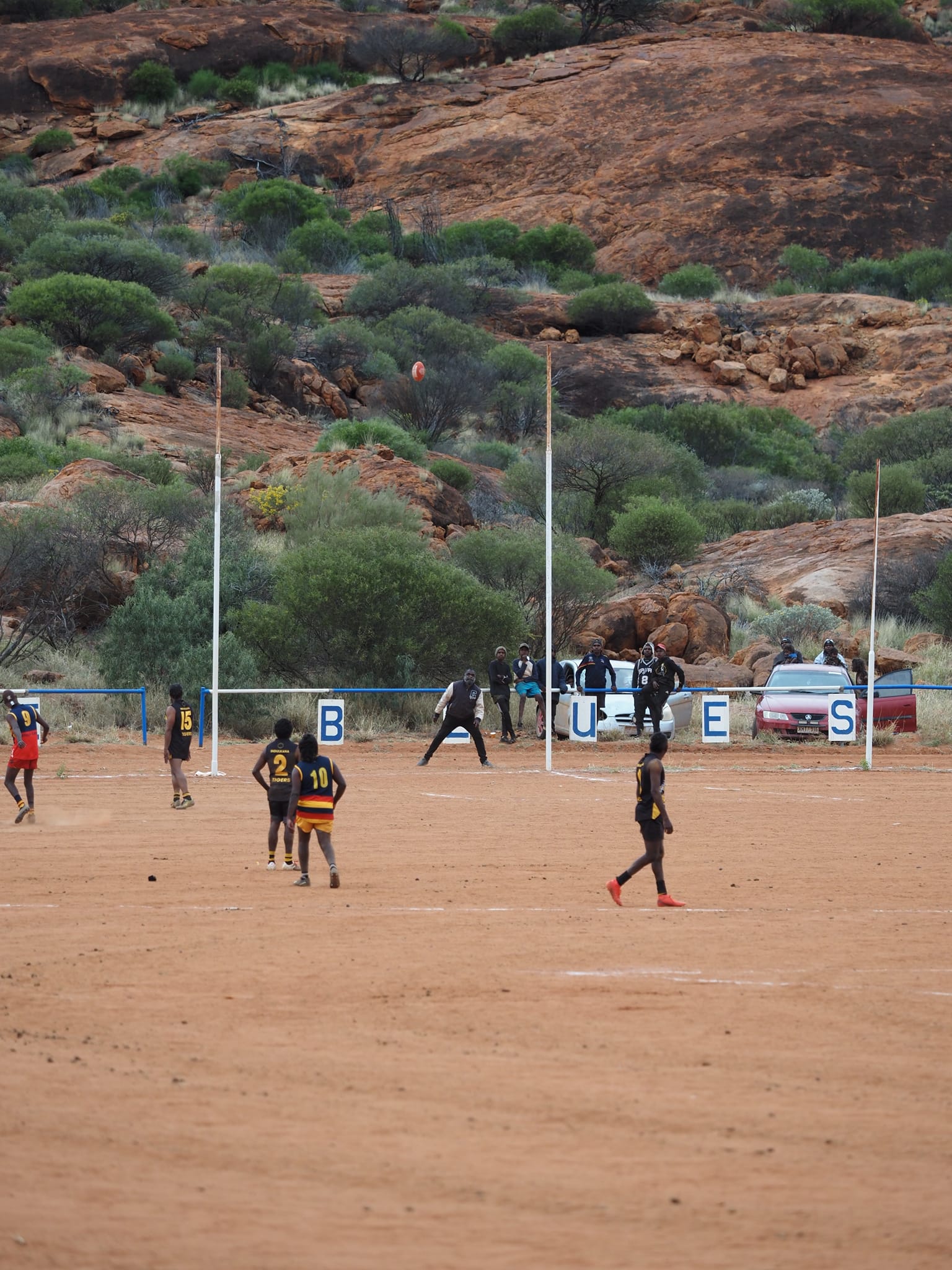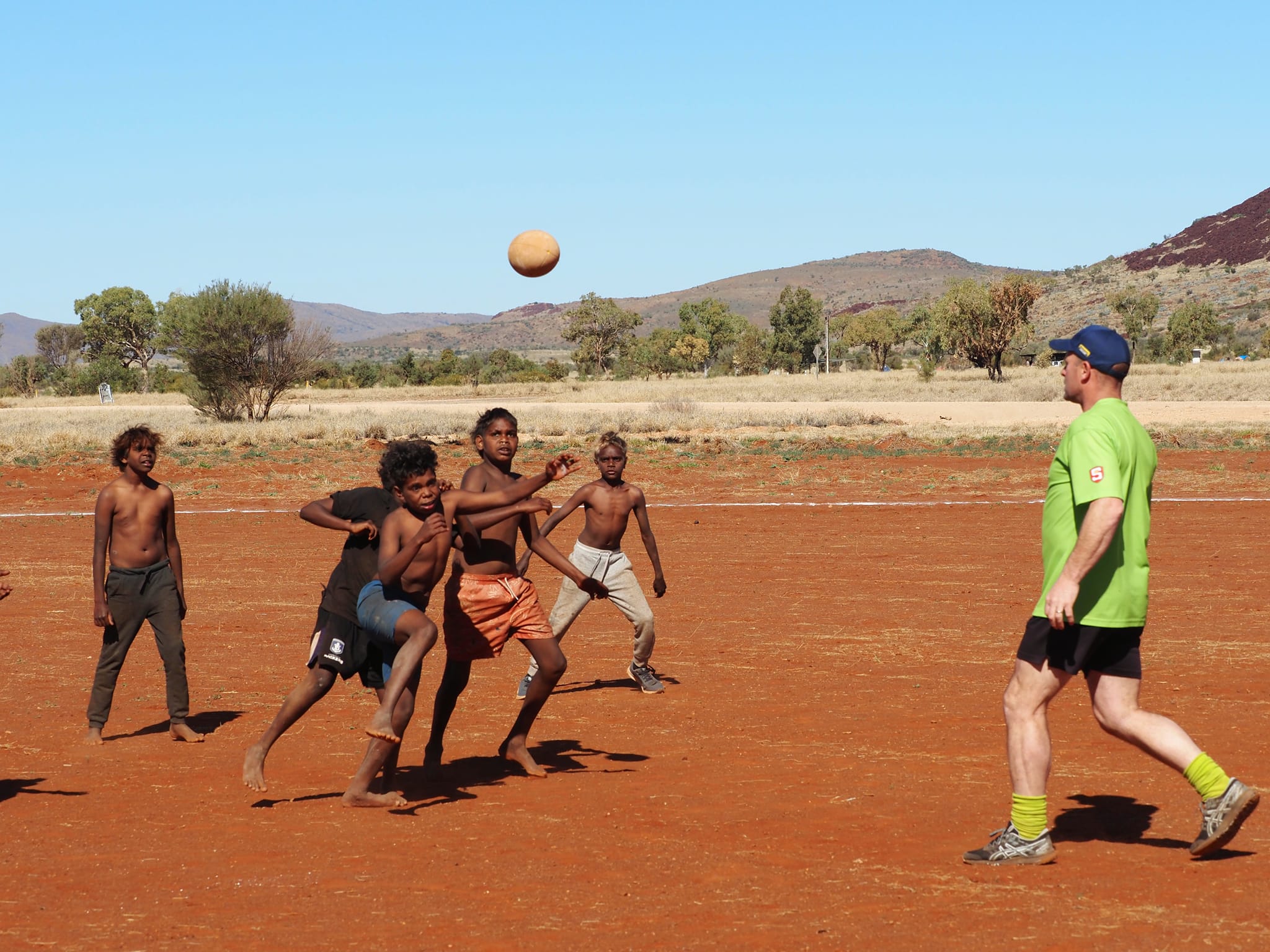 A scratch-match was organised for the kids in the community of Kalka — around 10 kilometres from the intersection of the NT, WA, and SA borders — on Sunday after one of the teams forfeited.