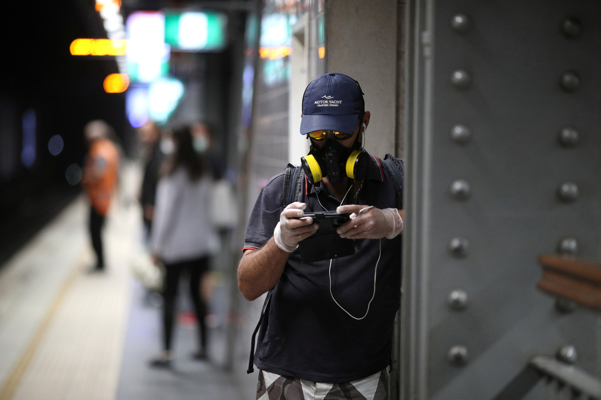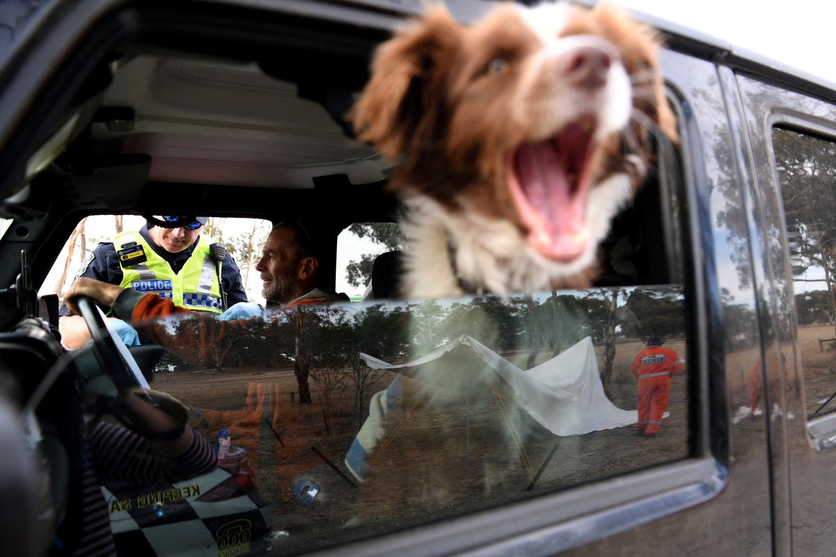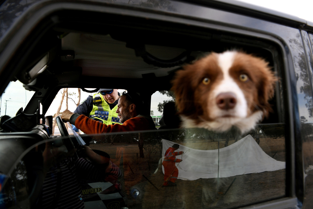 Motorists fill out paperwork for police as they cross back into South Australia from Victoria during the coronavirus disease (COVID-19) outbreak, in Bordertown, Australia, March 24, 2020. REUTERS/Tracey NearmyMotorists cross back into South Australia from Victoria before the border shutdown during the coronavirus disease (COVID-19) outbreak, in Bordertown , Australia, March 24, 2020. REUTERS/Tracey NearmyMotorists fill out paperwork for police as they cross back into South Australia from Victoria during the coronavirus disease (COVID-19) outbreak, in Bordertown, Australia, March 24, 2020. REUTERS/Tracey NearmyMotorist fills out paperwork for police as he crosses back into South Australia from Victoria during the coronavirus disease (COVID-19) outbreak, in Bordertown, Australia, March 24, 2020. REUTERS/Tracey NearmyPuppy Django yawns as his owner Jon Cross fills out paperwork to cross back into South Australia from Victoria during the coronavirus disease (COVID-19) outbreak, in Bordertown, Australia, March 24, 2020. REUTERS/Tracey NearmyA commuter wearing a face mask sits in a train during morning rush hour after New South Wales began shutting down non-essential businesses and moving toward harsh penalties to enforce self-isolation as the spread of coronavirus disease (COVID-19) reached a critical stage in Sydney, Australia, March 24, 2020. REUTERS/Loren ElliottPuppy Django looks out the car as his owner Jon Cross fills out paperwork to cross back into South Australia from Victoria during the coronavirus disease (COVID-19) outbreak, in Bordertown, Australia, March 24, 2020. REUTERS/Tracey NearmyStation workers walk near ticket gates at a deserted train station during morning rush hour after New South Wales began shutting down non-essential businesses and moving toward harsh penalties to enforce self-isolation as the spread of coronavirus disease (COVID-19) reached a critical stage in Sydney, Australia, March 24, 2020. REUTERS/Loren ElliottPeople wearing masks are seen at an empty street after New South Wales began shutting down non-essential businesses and moving toward harsh penalties to enforce self-isolation as the spread of coronavirus disease (COVID-19) reached a “critical stage” in Sydney, Australia, March 24, 2020. REUTERS/Loren ElliottA man wearing a face mask displays a sign for takeaway services at an eatery after New South Wales began shutting down non-essential businesses and moving toward harsh penalties to enforce self-isolation as the spread of coronavirus disease (COVID-19) reached a critical stage in Sydney, Australia, March 24, 2020. REUTERS/Loren ElliottA view of an empty mall after New South Wales began shutting down non-essential businesses and moving toward harsh penalties to enforce self-isolation as the spread of coronavirus disease (COVID-19) reached a "critical stage" in Sydney, Australia, March 24, 2020. REUTERS/Loren ElliottA commuter wearing a gas mask uses his mobile device while standing at a train platform after New South Wales began shutting down non-essential businesses and moving toward harsh penalties to enforce self-isolation as the spread of coronavirus disease (COVID-19) reached a "critical stage" in Sydney, Australia, March 24, 2020. REUTERS/Loren ElliottA police car is seen whilst motorists fill out paperwork for police as they cross back into South Australia from Victoria during the coronavirus disease (COVID-19) outbreak, in Bordertown, Australia, March 24, 2020. REUTERS/Tracey Nearmy