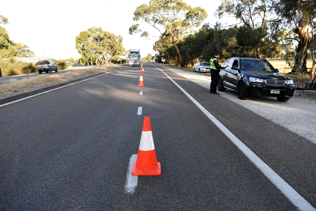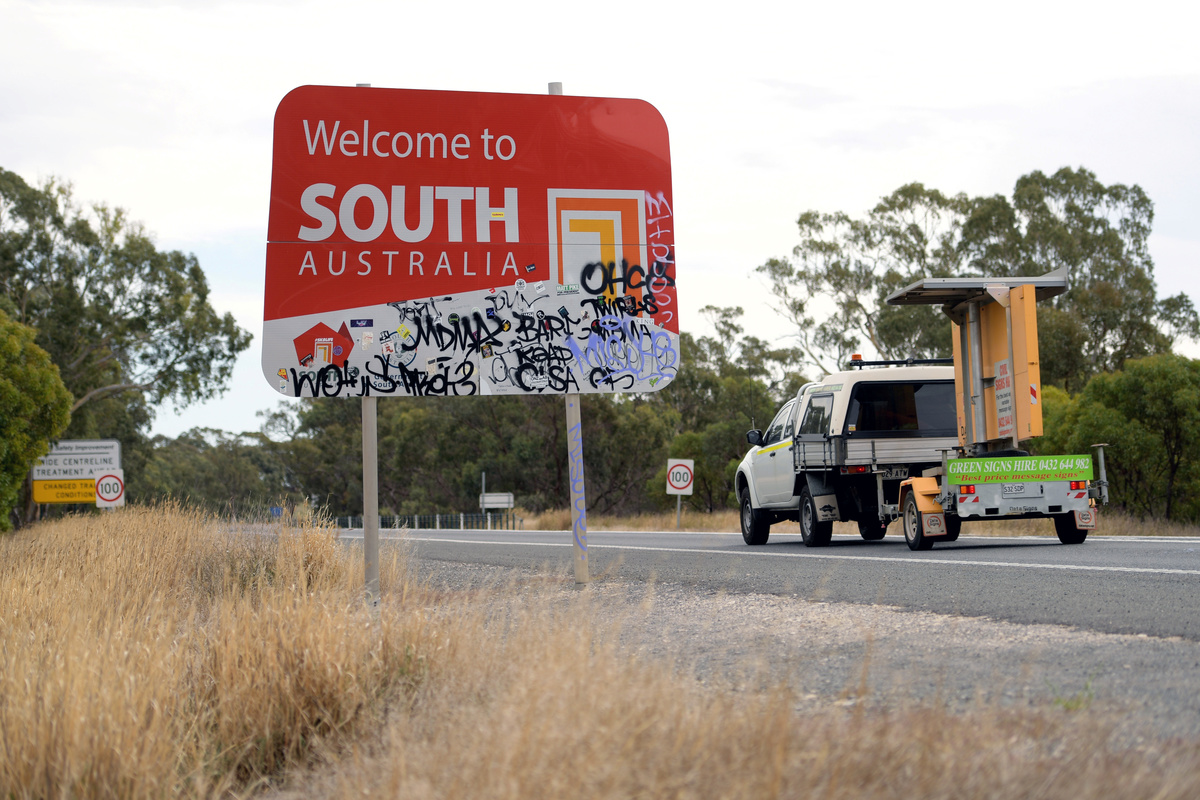 Motorist crosses back into South Australia from Victoria before the border shutdown, during the coronavirus disease (COVID-19) outbreak, in Bordertown , Australia, March 24, 2020. REUTERS/Tracey Nearmy