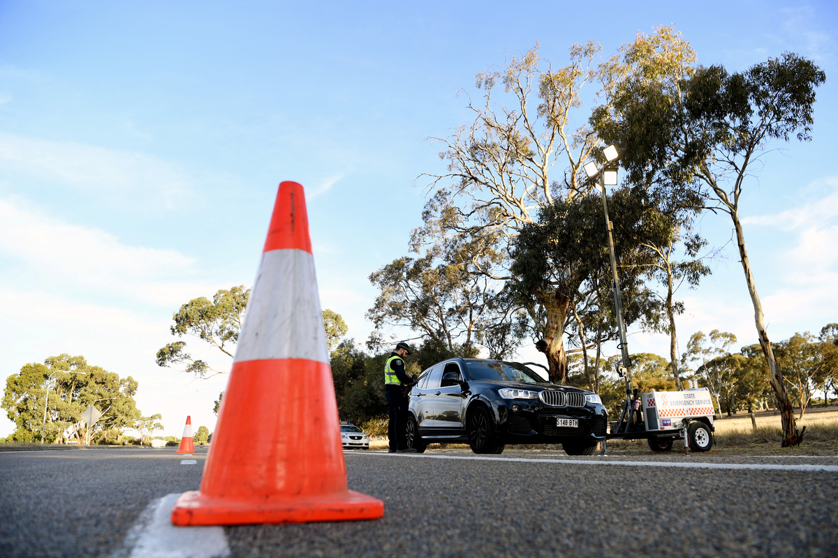 Motorists fill out paperwork for police as they cross back into South Australia from Victoria, in Bordertown, Australia, March 24, 2020. REUTERS/Tracey Nearmy