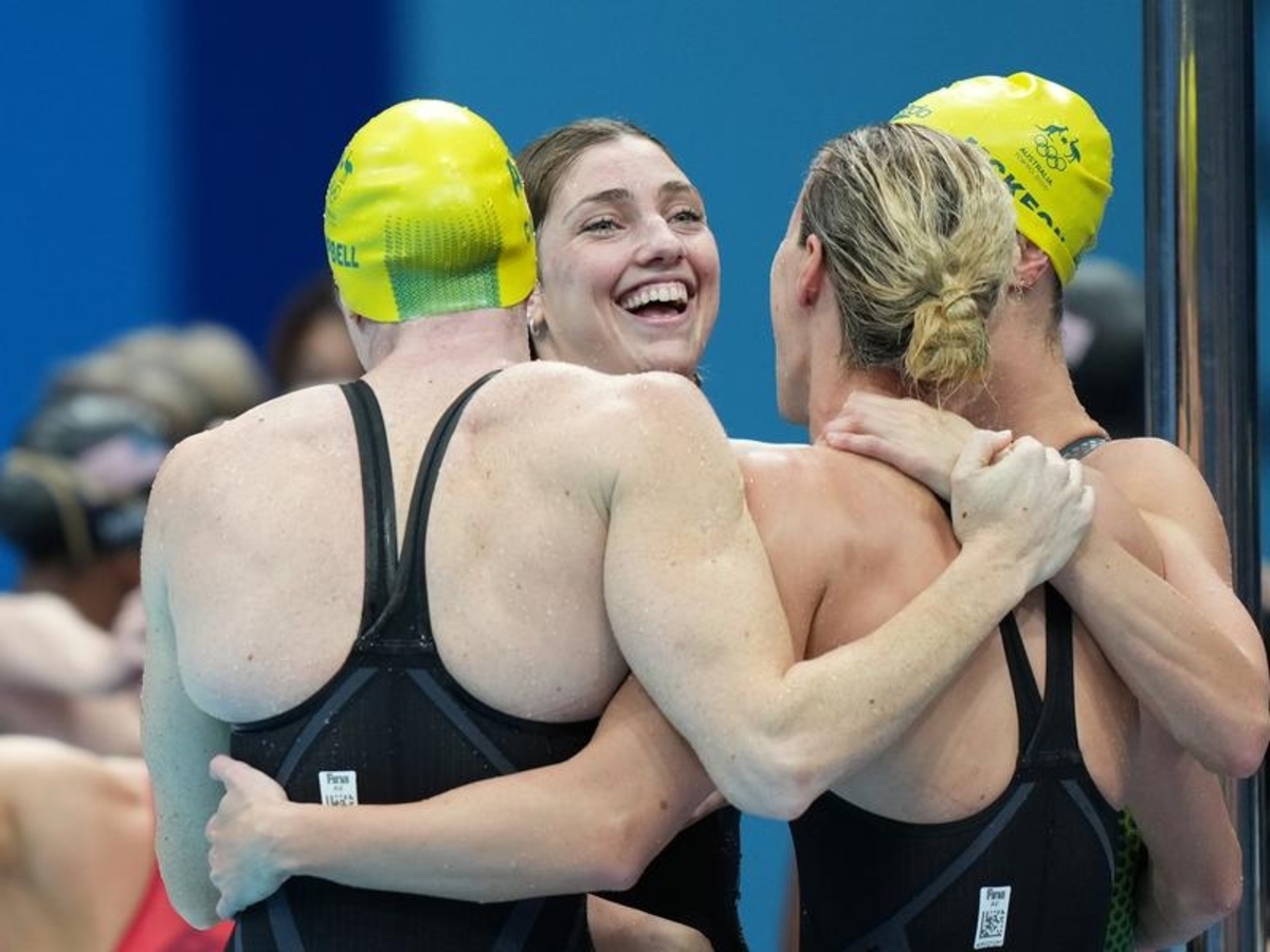 The women's 4x100m freestyle relay team - sisters Cate and Bronte Campbell, Emma McKeon and Meg Harris - set a world record to win Australia's first gold of the Tokyo Games.