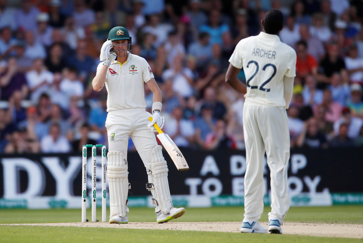 Cricket - Ashes 2019 - Third Test - England v Australia - Headingley, Leeds, Britain - August 24, 2019 Australia's Marnus Labuschagne in action with England's Jofra Archer Action Images via Reuters/Andrew BoyersCricket - Ashes 2019 - Third Test - England v Australia - Headingley, Leeds, Britain - August 24, 2019 Australia's David Warner with team mates huddle before they take the field Action Images via Reuters/Andrew BoyersCricket - Ashes 2019 - Third Test - England v Australia - Headingley, Leeds, Britain - August 24, 2019 Australia's James Pattinson in action Action Images via Reuters/Andrew BoyersCricket - Ashes 2019 - Third Test - England v Australia - Headingley, Leeds, Britain - August 24, 2019 Australia's Marnus Labuschagne after being hit by a ball from England's Jofra Archer Action Images via Reuters/Andrew BoyersCricket - Ashes 2019 - Third Test - England v Australia - Headingley, Leeds, Britain - August 24, 2019 England's Jofra Archer celebrates taking the wicket of Australia's James Pattinson with team mates Action Images via Reuters/Andrew BoyersCricket - Ashes 2019 - Third Test - England v Australia - Headingley, Leeds, Britain - August 24, 2019 England's Jofra Archer celebrates taking the wicket of Australia's James Pattinson Action Images via Reuters/Lee SmithCricket - Ashes 2019 - Third Test - England v Australia - Headingley, Leeds, Britain - August 24, 2019 England's Ben Stokes celebrates taking the wicket of Australia's Pat Cummins Action Images via Reuters/Andrew Boyers