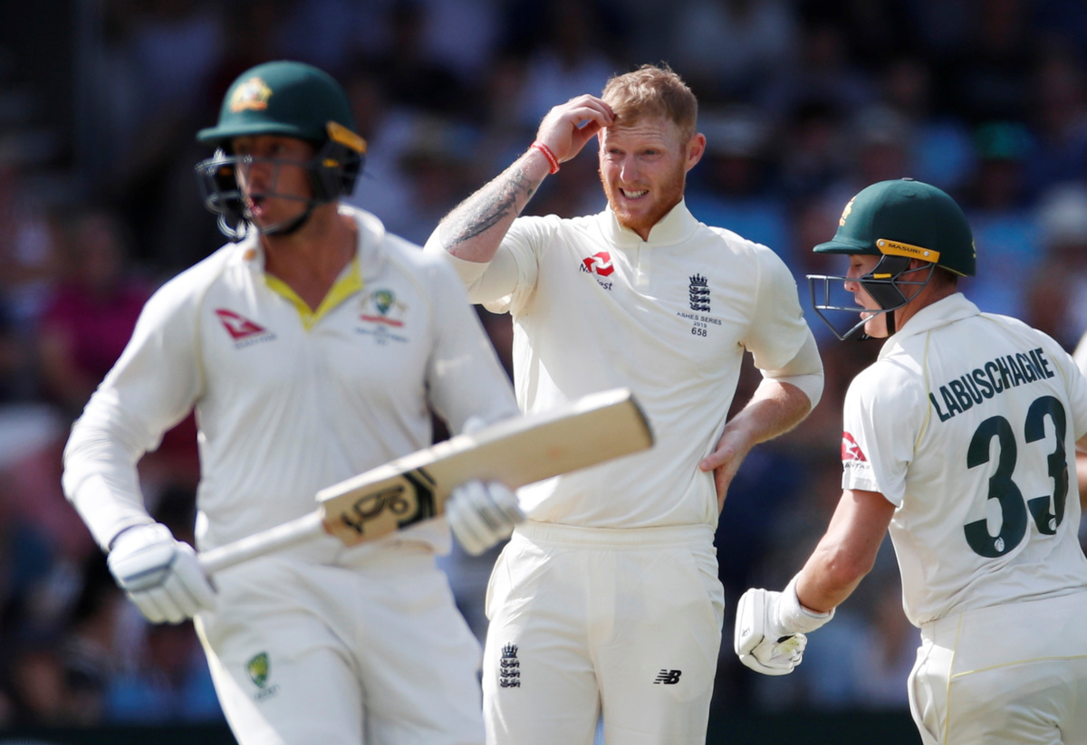 Cricket - Ashes 2019 - Third Test - England v Australia - Headingley, Leeds, Britain - August 24, 2019 Australia's James Pattinson and Marnus Labuschagne in action whilst England's Ben Stokes looks on Action Images via Reuters/Andrew Boyers
