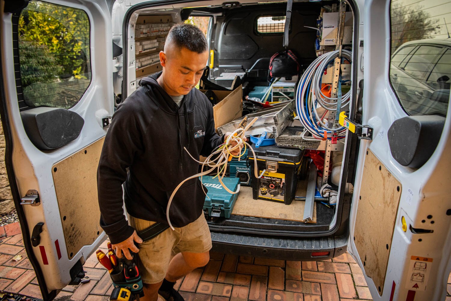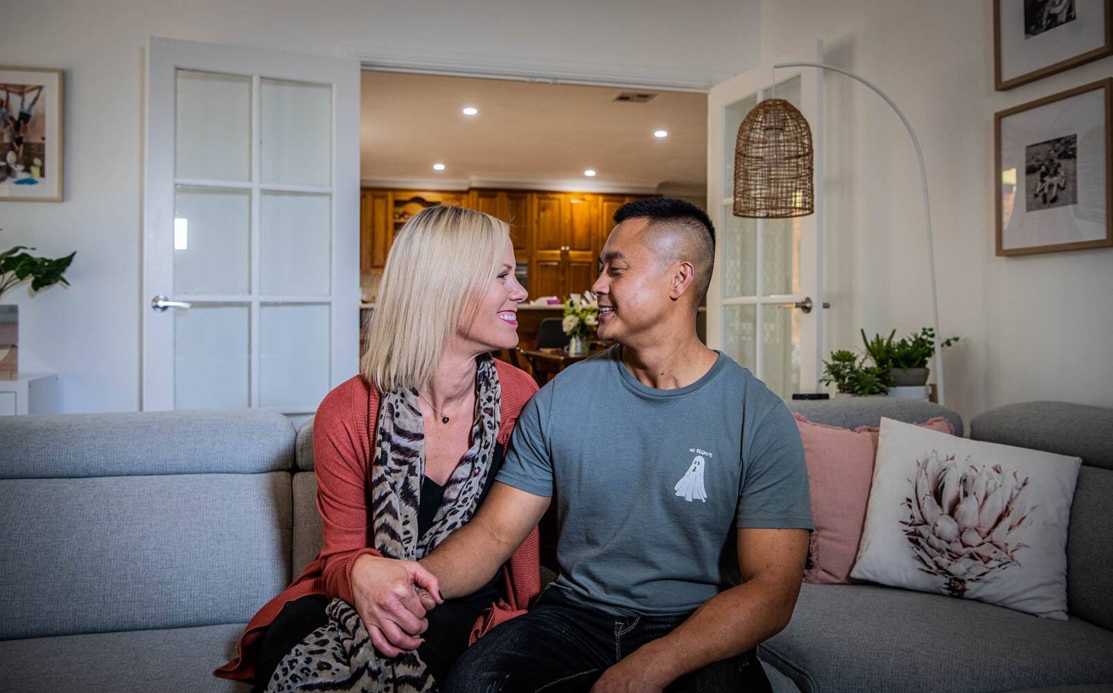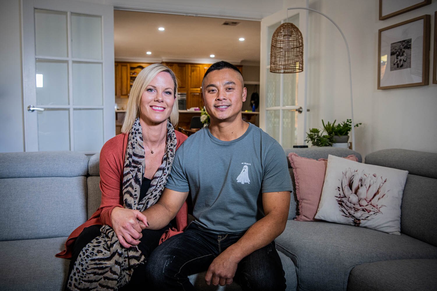 Chewy runs his own solar-panel-focused electrical business, while Brie works at a local insurance broking firm. They've done "the stint" in London, came back and worked hard to build their life "back home".