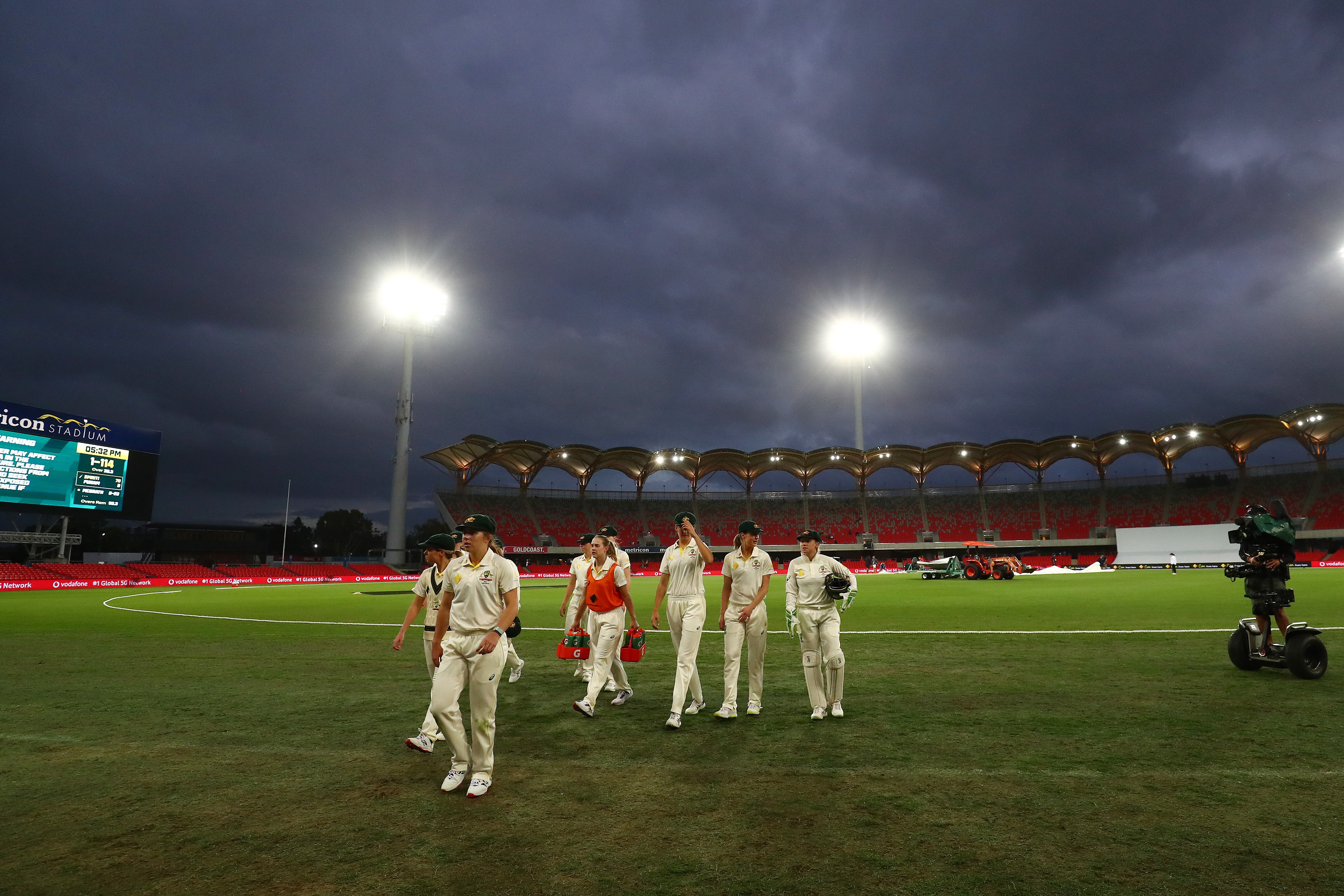 Rain and thunderstorms have ended play early on day one of the women's Test on the Gold Coast, with India in a strong position against Australia.