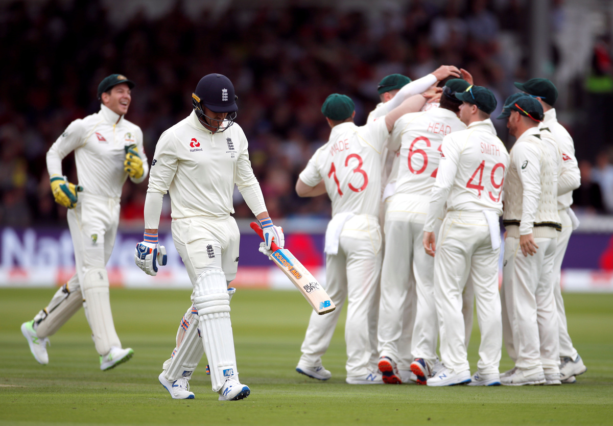 LONDON (Reuters) - Josh Hazlewood, Pat Cummins and Nathan Lyon took three wickets each as Australia bowled out England for 258 and reached 30 for one in reply to take control of the second Ashes test at Lord's on Thursday.