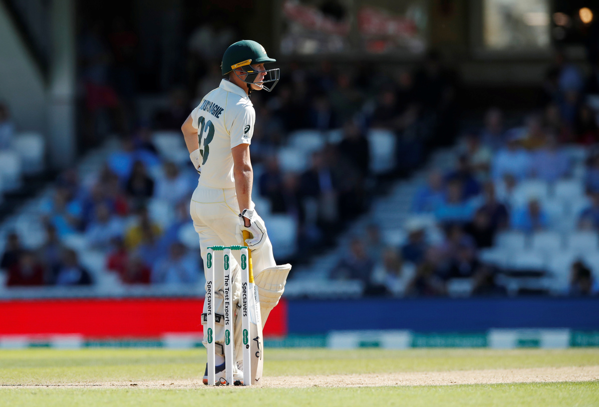 The biggest cheer of the first two sessions came when Labuschagne tore off down the wicket for a hurried single that finally got Smith off the mark.