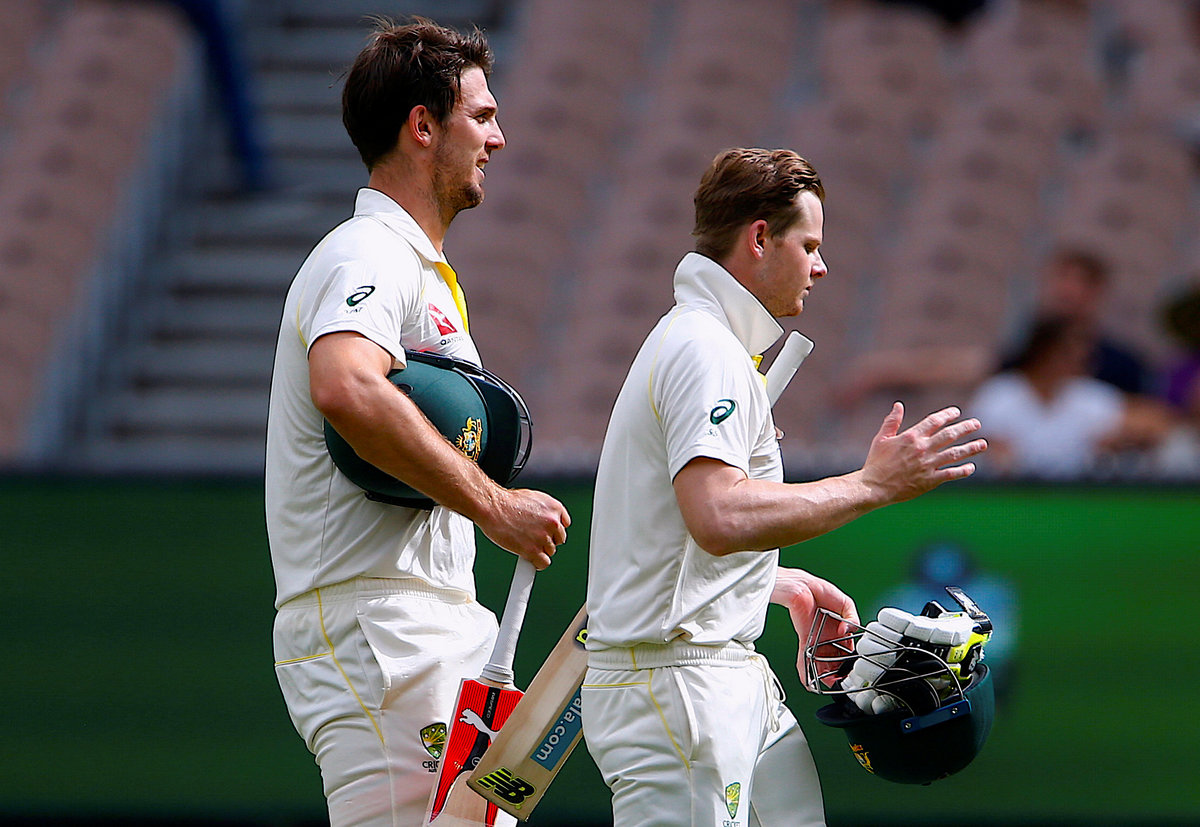 Cricket - Ashes test match - Australia v England - MCG, Melbourne, Australia, December 30, 2017. Australia's Steve Smith and team mate Mitchell Marsh walks off the ground at the end of the fourth Ashes cricket test match. REUTERS/David Gray