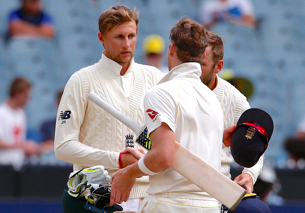 Cricket - Ashes test match - Australia v England - MCG, Melbourne, Australia, December 30, 2017. England's captain Joe Root shakes hands with Australia's captain Steve Smith to end the fourth Ashes cricket test match. REUTERS/David Gray