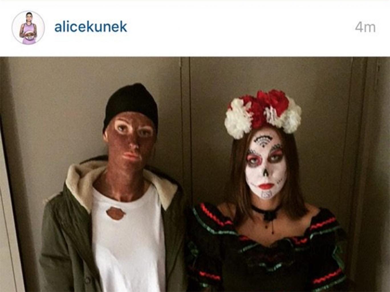 Alice Kunek was celebrating the Melbourne Boomers’ end-of-season ‘Silly Sunday’ when she posted a picture on Twitter of her painted face, which was part of her Kanye West fancy dress costume.