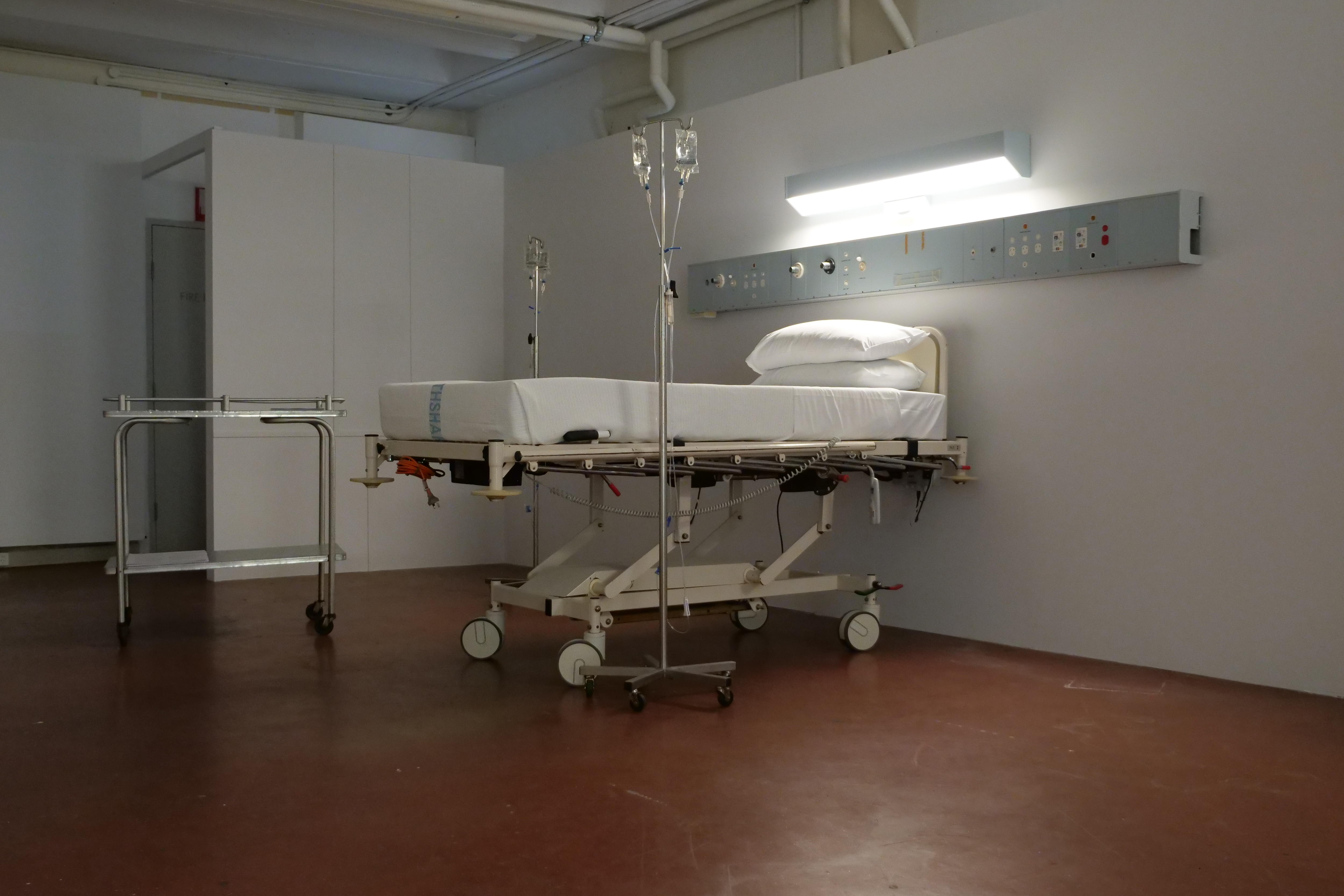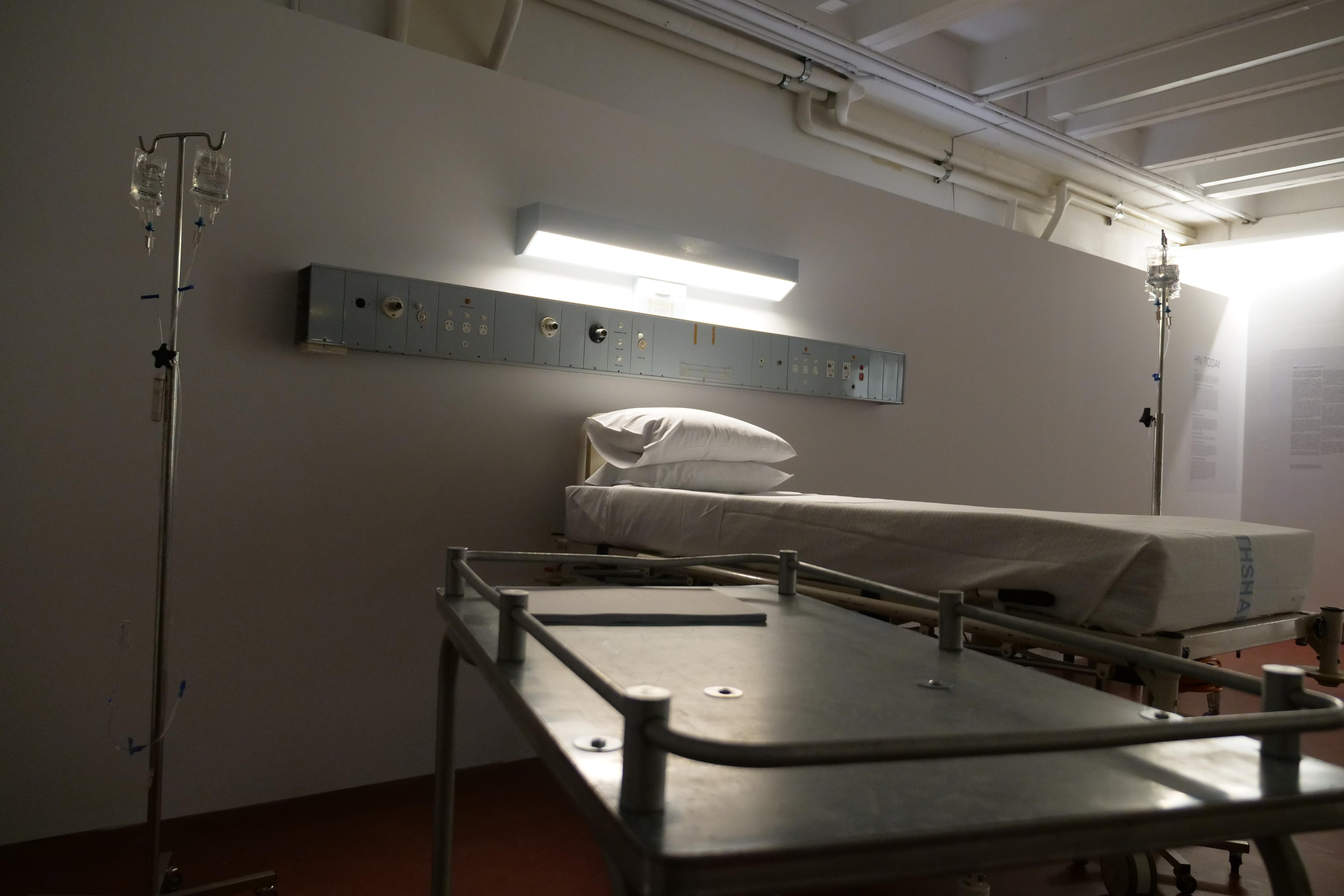 It features a hospital bed and drip feed from the old ward, as well as video interviews from survivors and medical professionals.