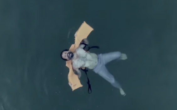 In the closing scenes, a man can be seen struggling in deep water with the corpse of his dead, toddler-aged daughter as a boat abandons them in the distance.