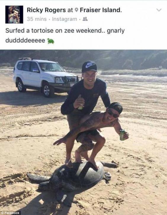 The image of the Fraser Island beach was shared to Instagram by Rick Rogers with the caption: “'Surfed a tortoise on zee weekend. gnarly duddddeeeee," but was later deleted after the post received widespread backlash.