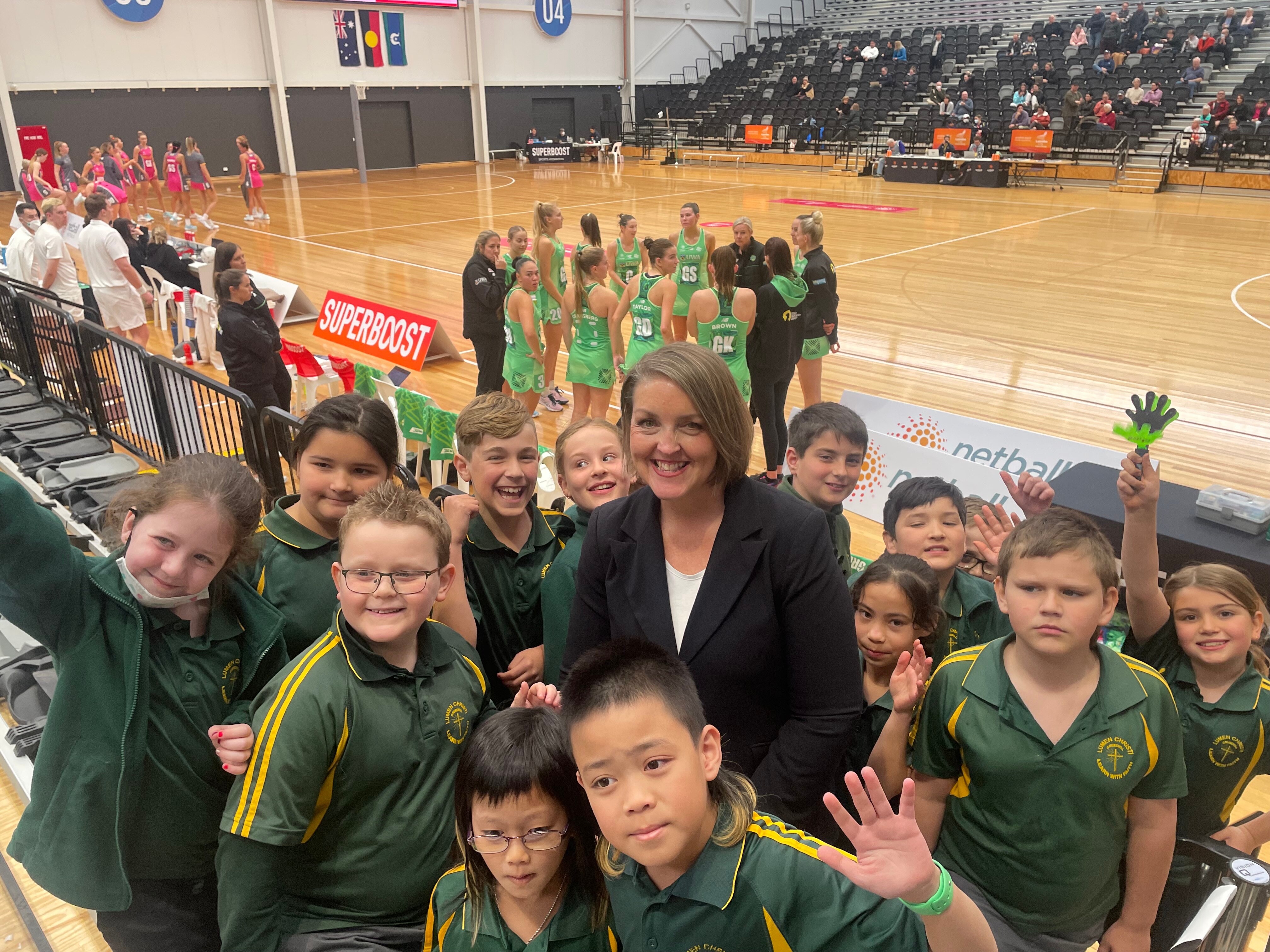 At the Australian Netball Championships, visiting and local clubs have facilitated netball clinics on site so kids can participate in an activity before watching a game.