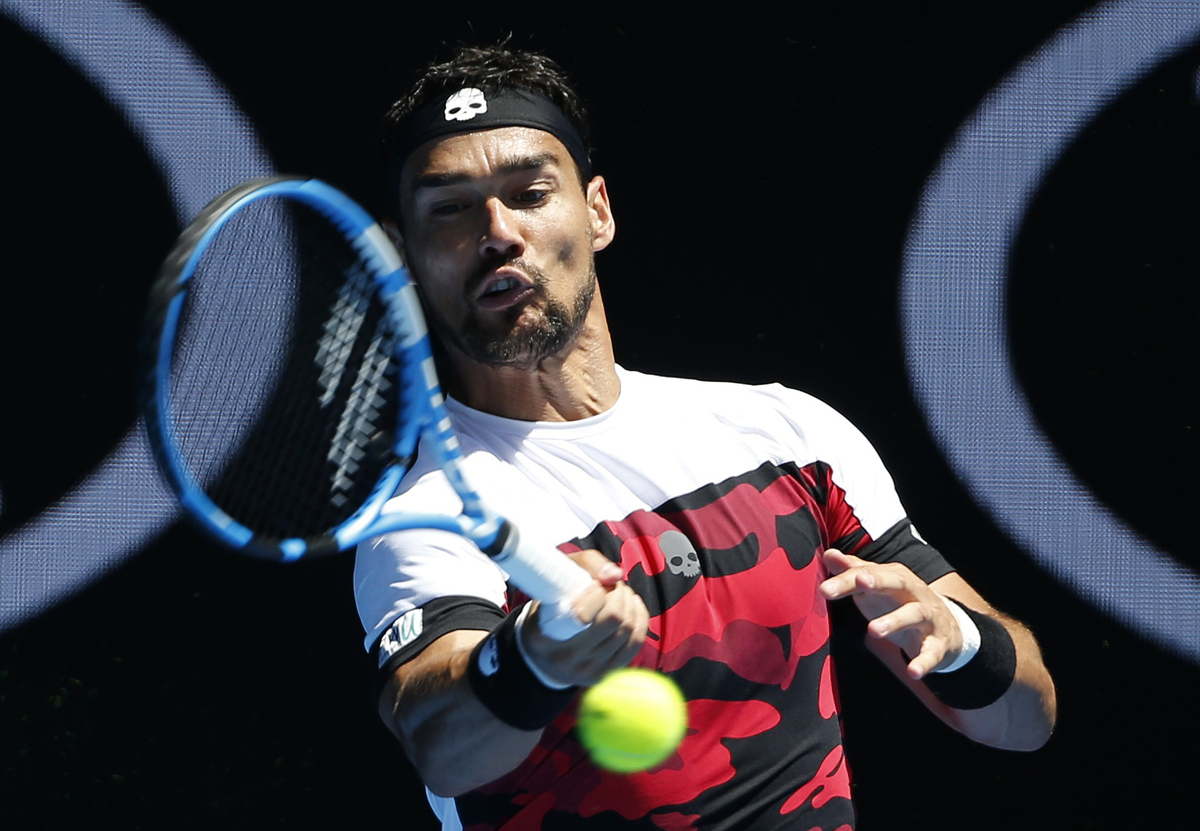 Czech Tomas Berdych beat Italian Fabio Fognini 6-1 6-4 6-4 to progress to the last eight of the Australian Open for the seventh time in eight years.