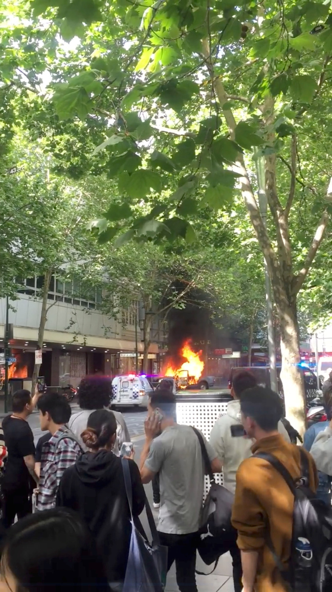 Friday's attack began just before the evening rush hour and lasted only minutes. Shire Ali stabbed bystanders and attacked police while his utility truck carrying barbecue gas cylinders burned on busy Bourke Street. (https://tmsnrt.rs/2Qu5stX)
