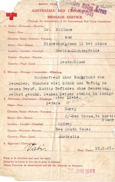 Harry left behind a briefcase with letters his parents sent to him at the time of his emigration and during his first months in Australia. But the correspondence includes only the letters Harry received, which silences the other half of the story. We will never know what Harry wrote back. After the outbreak of the war, Max, Edith and Oma only sent a few short messages, up to 25 words per message, via the Red Cross. Then they turned silent.