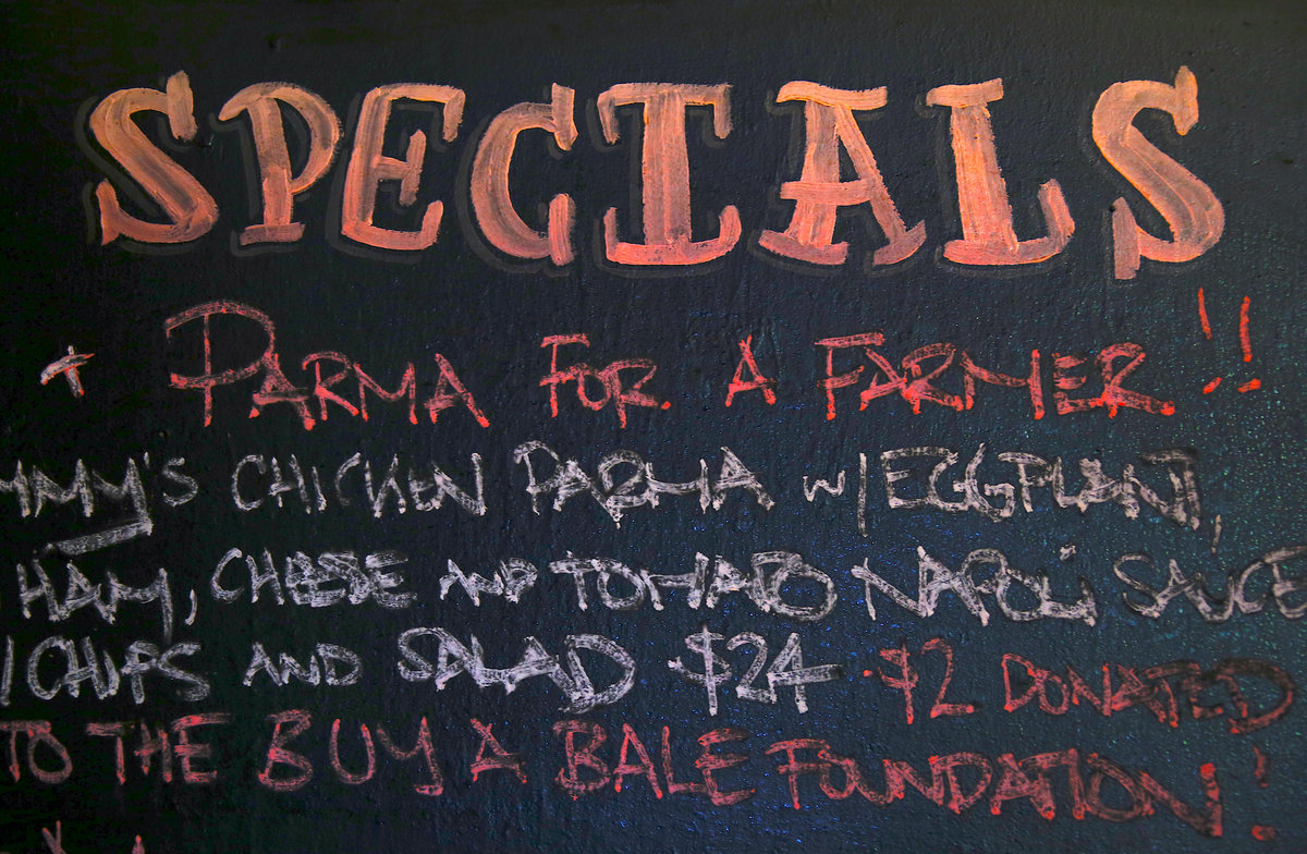 All over a continent where "the bush" looms large in the public psyche, that's prompted bars to promise a dollar in donation from each meal sold, as well as collecting cash from barflies, as part of the "parma for a farmer" drive.