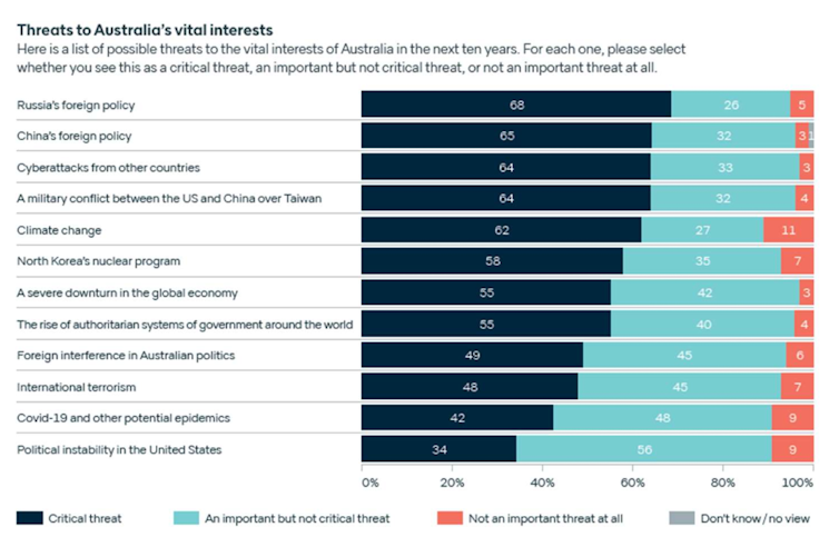 In general, anxiety about Russia, China and a war over Taiwan have overtaken Australians’ concerns about COVID-19 and climate change.