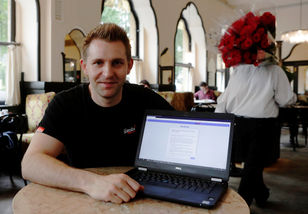 His laptop perched on the table of a traditional Viennese coffee house, Schrems showed how a pop-up message on Facebook seeks consent to use his data - and how he is blocked when he refuses.