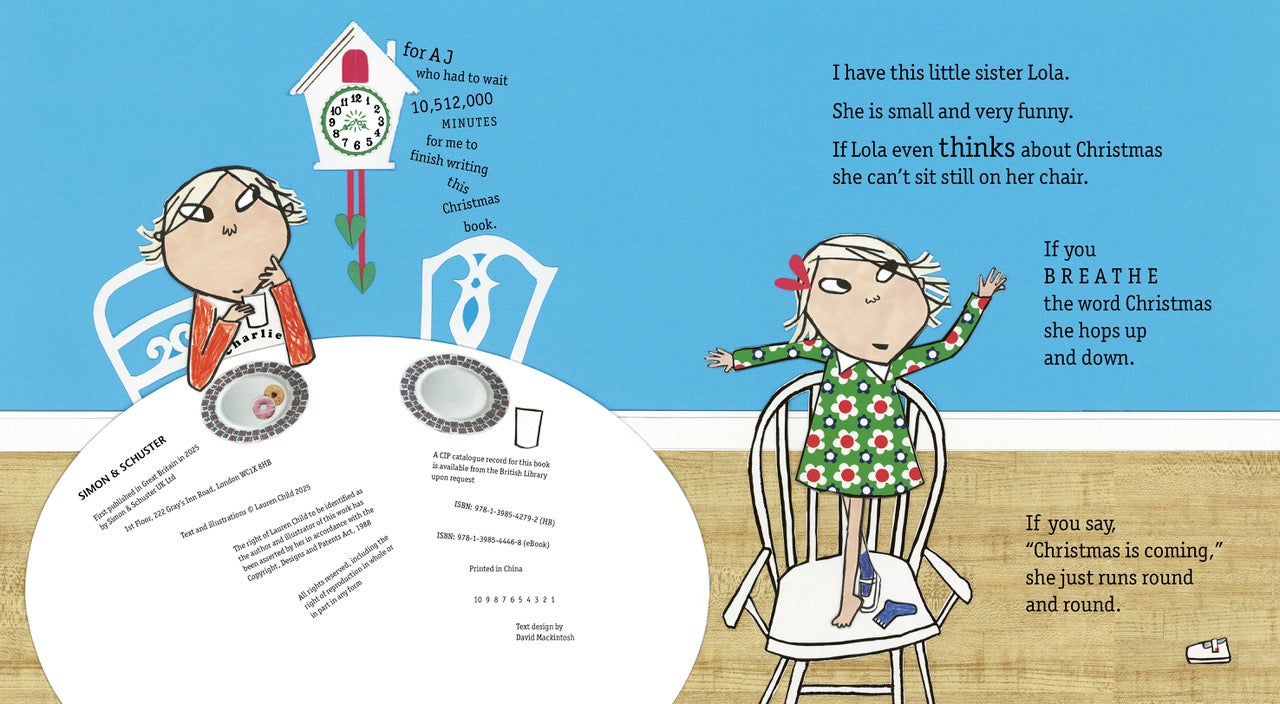 “So this is less a book about Christmas and much more a book about how you manage to wait when you’re tiny. Lola is only three-and-a-half, so how many Christmases will she have actually experienced? And so it’s this huge thing for her to grasp and wonder about and wait for.