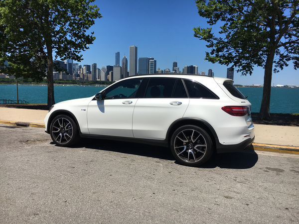 Driving the GLC43 in sport mode is like walking a young boxer on a leash. For the most part it's well-behaved, but other times at the slightest provocation of the throttle it yanks and lurches ahead. Getting used to the snarl in sport mode was fun. The biturbo V-6 has no lag, though the 384 pound-feet of torque comes a bit later at 2,500 rpm than the Macan GTS. At that point, it's broken the leash and is churning to 60 mph in an estimated 4.8 seconds. It's breathtakingly quick for a crossover, and the rear-wheel drive bias of the all-wheel-drive system, which is another difference for the AMG line, means there's plenty of launch from the haunches. It growls and snorts better than most V-6s we've tested.