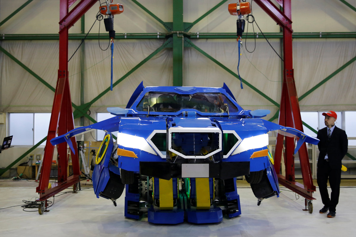 A new transforming robot called "J-deite RIDE" that transforms itself into a passenger vehicle, developed by Brave Robotics Inc, Asratec Corp and Sansei Technologies Inc, demonstrates during its unveiling at a factory near Tokyo, Japan, April 25, 2018. REUTERS/Toru HanaiA new transforming robot called "J-deite RIDE" that transforms itself into a passenger vehicle, developed by Brave Robotics Inc, Asratec Corp and Sansei Technologies Inc, demonstrates during its unveiling at a factory near Tokyo, Japan, April 25, 2018. REUTERS/Toru HanaiA new transforming robot called "J-deite RIDE" that transforms itself into a passenger vehicle, developed by Brave Robotics Inc, Asratec Corp and Sansei Technologies Inc, demonstrates during its unveiling at a factory near Tokyo, Japan, April 25, 2018. REUTERS/Toru HanaiA new transforming robot called "J-deite RIDE" that transforms itself into a passenger vehicle, developed by Brave Robotics Inc, Asratec Corp and Sansei Technologies Inc, demonstrates during its unveiling at a factory near Tokyo, Japan, April 25, 2018. REUTERS/Toru HanaiA combination picture shows a new transforming robot called "J-deite RIDE" that transforms itself into a passenger vehicle, developed by Brave Robotics Inc, Asratec Corp and Sansei Technologies Inc, as it's demonstrated during its unveiling at a factory near Tokyo, Japan, April 25, 2018. REUTERS/Toru Hanai