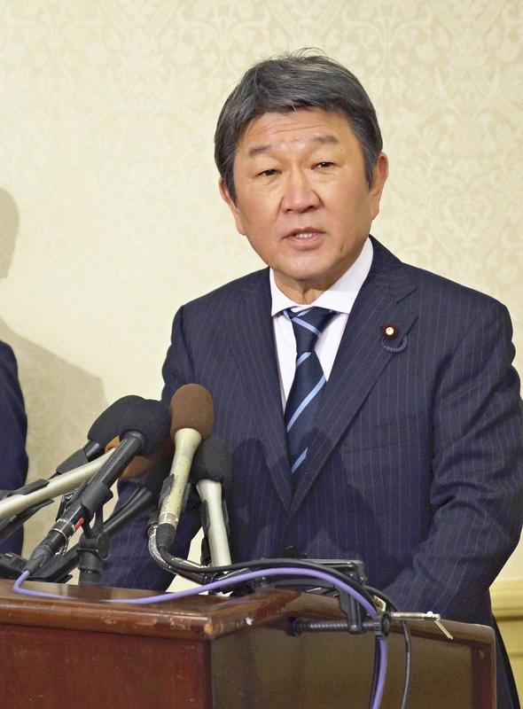 Regarding Japan's automobile exports, which have led to a trade imbalance with the United States, Motegi said, "We are proceeding with talks with an eye toward a win-win agreement."