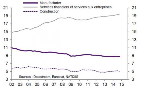 Financial services - like banks and mortgage lenders - have become more and more important to the UK's economy at the expense of manufacturing and construction: