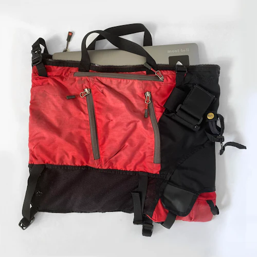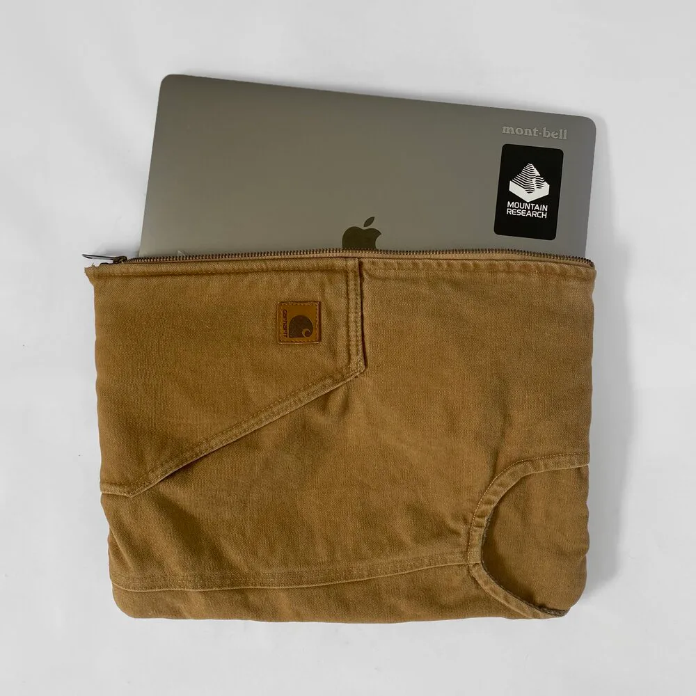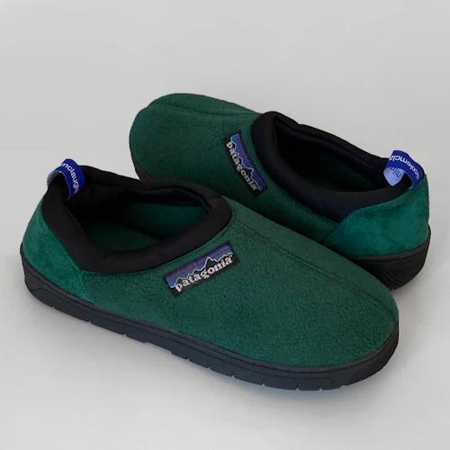 Included in the raffle are two pairs of slippers (one for men and one for women) made from Patagonia fleece jackets, which have become something of a signature piece from McLaughlin. There are also a pair of laptop bags made from upcycled vests, from Carhartt and The North Face respectively.
