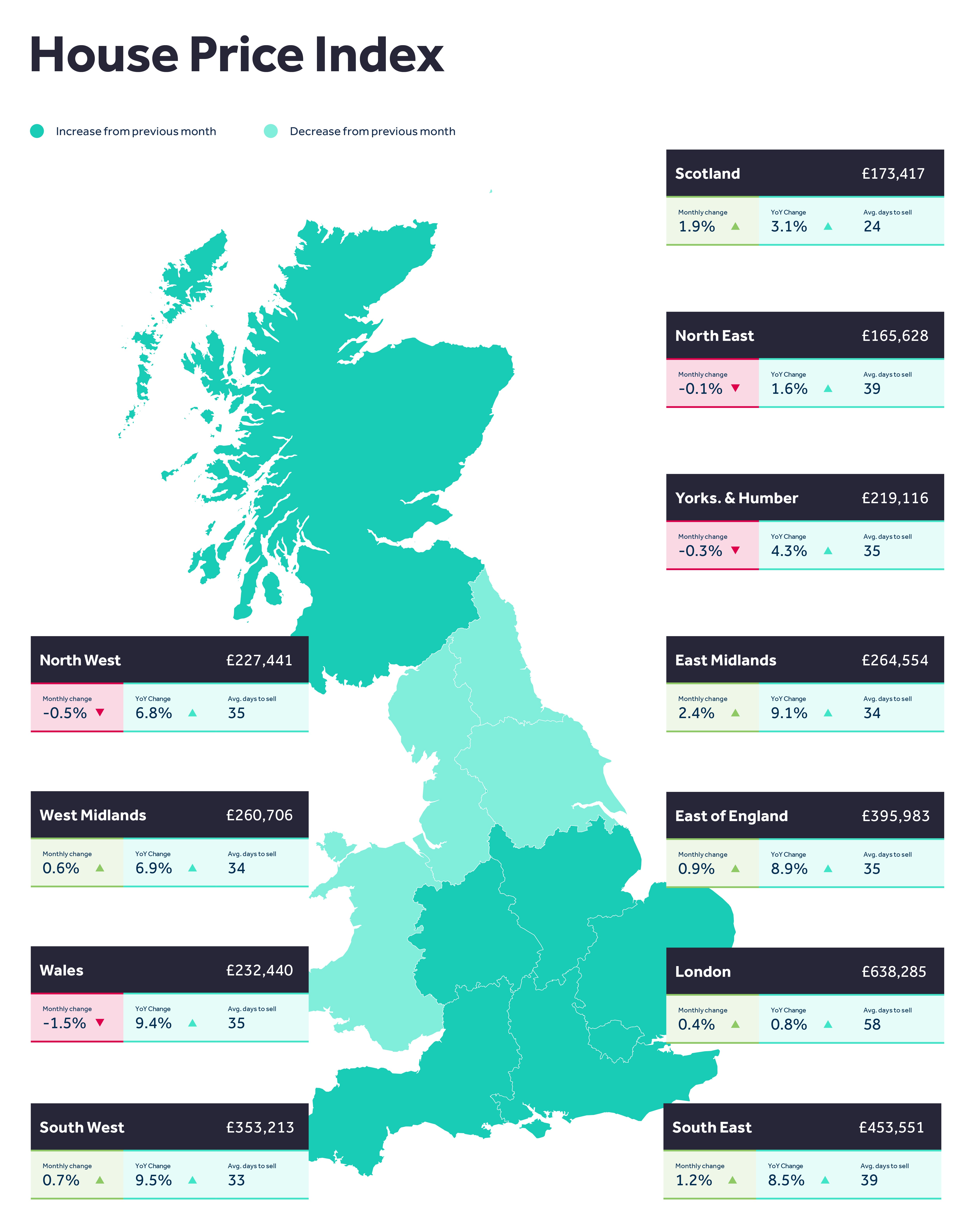 Five nations or regions – Wales South West England the East Midlands the East of England and the South East – are experiencing annual asking price growth of more than 8%.