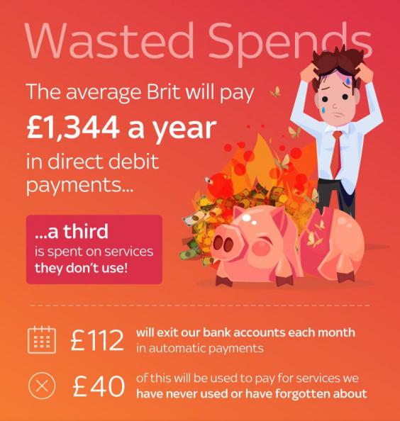 The average Briton will waste more than £30,000 in their lifetime after losing track of monthly direct debits.
