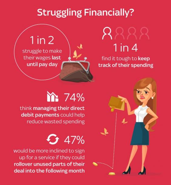 Of those who have to stretch every penny to make it through the month, 74 per cent think their situation could be improved by managing their direct debit payments better in a bid to stop wasting money.