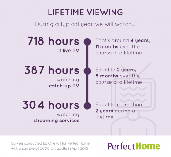 "We were shocked to discover that we typically watch almost 10 years of their life watching TV – that’s almost one eighth of the average UK lifetime," said a spokesman for PerfectHome which commissioned the research.
