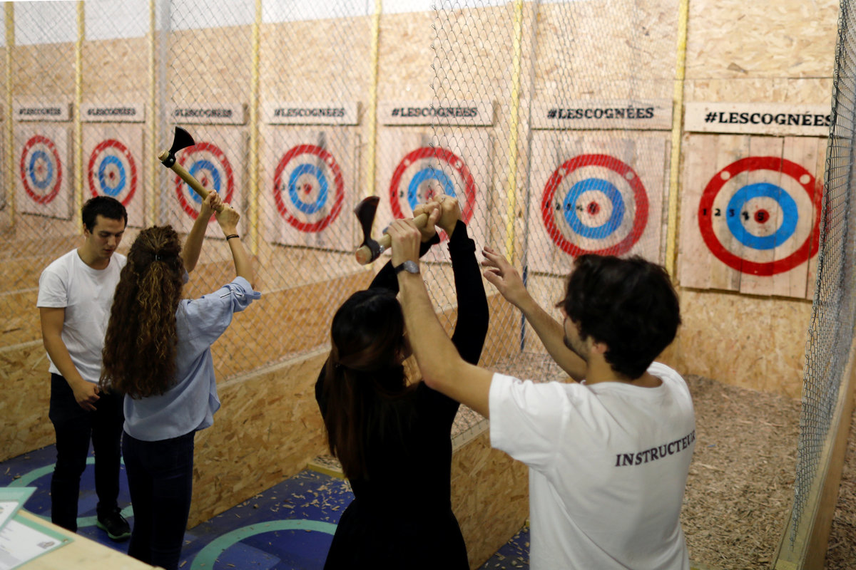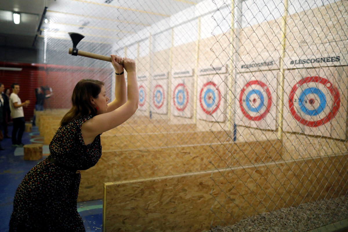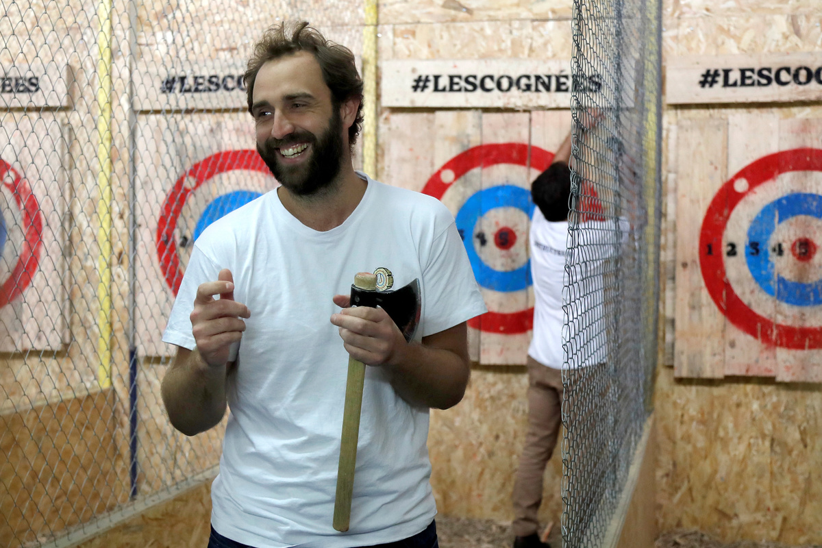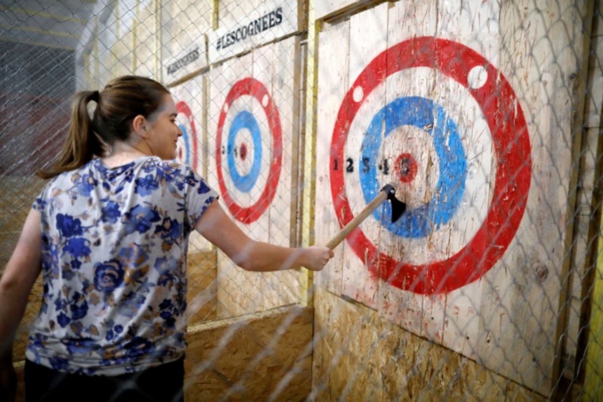 So he opened Les Cognees - French for "axes" or "hatchets" - where people can gather after work and pay to hurl heavy edged weapons around. What could go wrong?