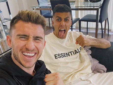 Aymeric Laporte and Rodri celebrated United’s defeat to Leicester together, while other players including Raheem Sterling reacted on social media to City winning their second major honour of the season.