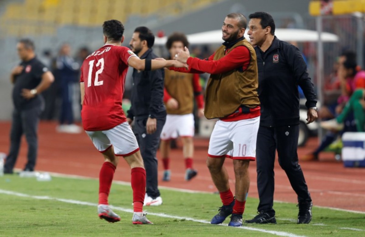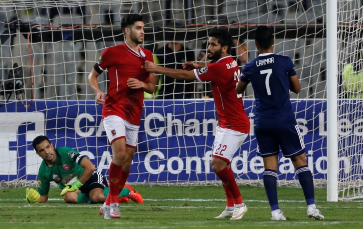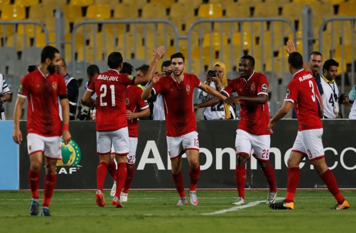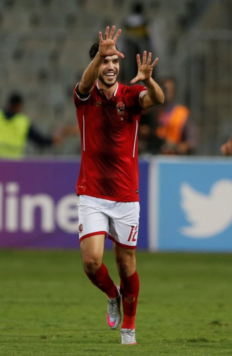 Soccer Football - CAF Champions League - Semi-Final - Al Ahly vs Etoile du Sahel - Borg El Arab Stadium, Borg El Arab, Egypt - October 22, 2017 Al Ahly's Walid Azaro celebrates with Emad Moteab and coach Hossam El-Badry after scoring a goal REUTERS/Amr DalshSoccer Football - CAF Champions League - Semi-Final - Al Ahly vs Etoile du Sahel - Borg El Arab Stadium, Borg El Arab, Egypt - October 22, 2017 Al Ahly's Walid Azaro celebrates scoring a goal REUTERS/Amr DalshSoccer Football - CAF Champions League - Semi-Final - Al Ahly vs Etoile du Sahel - Borg El Arab Stadium, Borg El Arab, Egypt - October 22, 2017 Al Ahly's Walid Azaro celebrates scoring a goal with team mates REUTERS/Amr DalshSoccer Football - CAF Champions League - Semi-Final - Al Ahly vs Etoile du Sahel - Borg El Arab Stadium, Borg El Arab, Egypt - October 22, 2017 Al Ahly's Walid Azaro celebrates scoring a goal REUTERS/Amr Dalsh