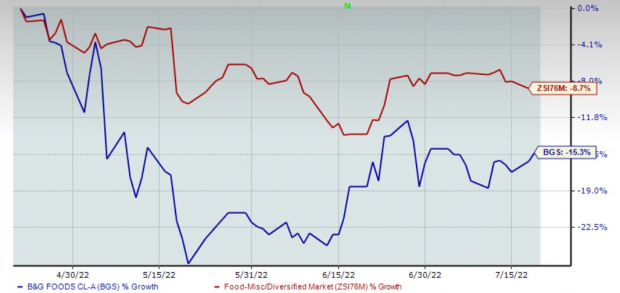 B&G Foods, Inc. (NYSE:BGS) appears to be in not-so-great shape, with its shares down 15.3% in the past three months compared with the industry's decline of 8.7%. The company has been encountering severe cost headwinds, which, along with supply-chain disruptions, led management to lower its adjusted EBITDA and earnings per share (ETF:EPS) view for fiscal 2022 when it reported first-quarter results.