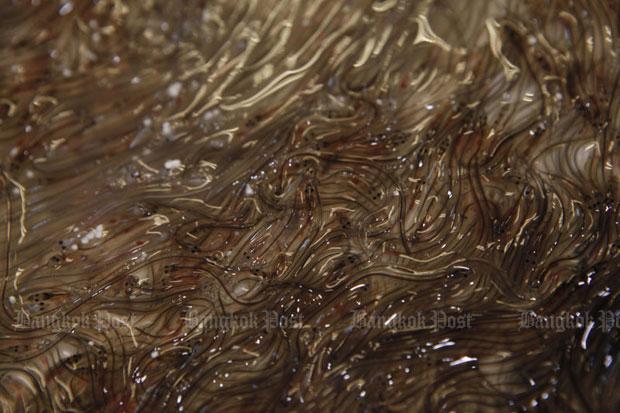 The smuggled fish were young ones, elvers which were naturally transparent, so called glass eels. Possibly they were en route to another country where the dish is popular, said the customs chief, who valued them at 40 million baht.