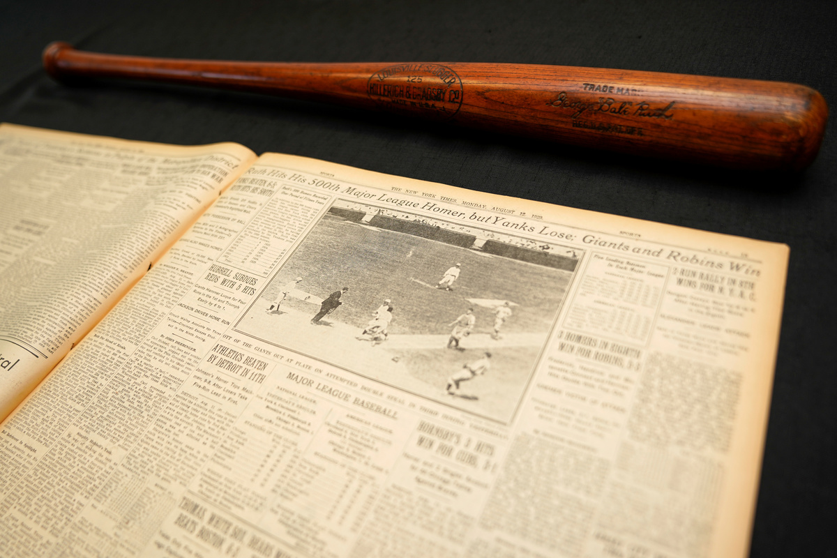 It follows a bat, which the Sultan of Swat used in 1923 to hit the first home run out of the original Yankee Stadium, that sold for a record $1.3 million in 2004.