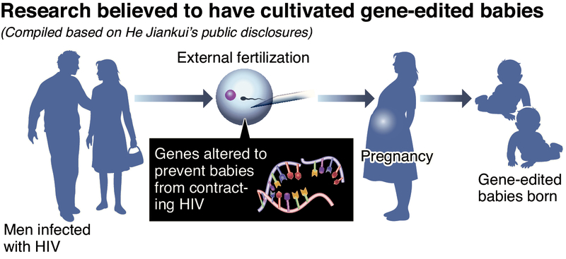 The research was conducted between March 2017 and November 2018 on eight volunteer couples in which the husbands had contracted HIV. Two women eventually conceived babies from the genome-edited eggs. One of the women gave birth to twin girls, while the other is still pregnant. An ethical review certificate needed to approve the research had been fabricated.